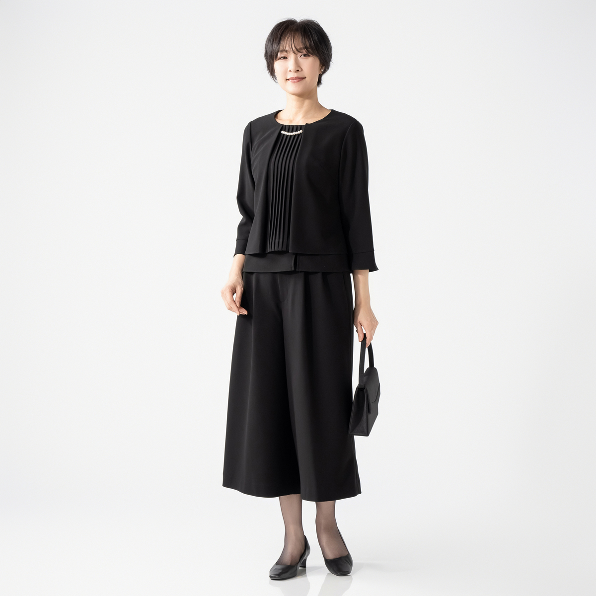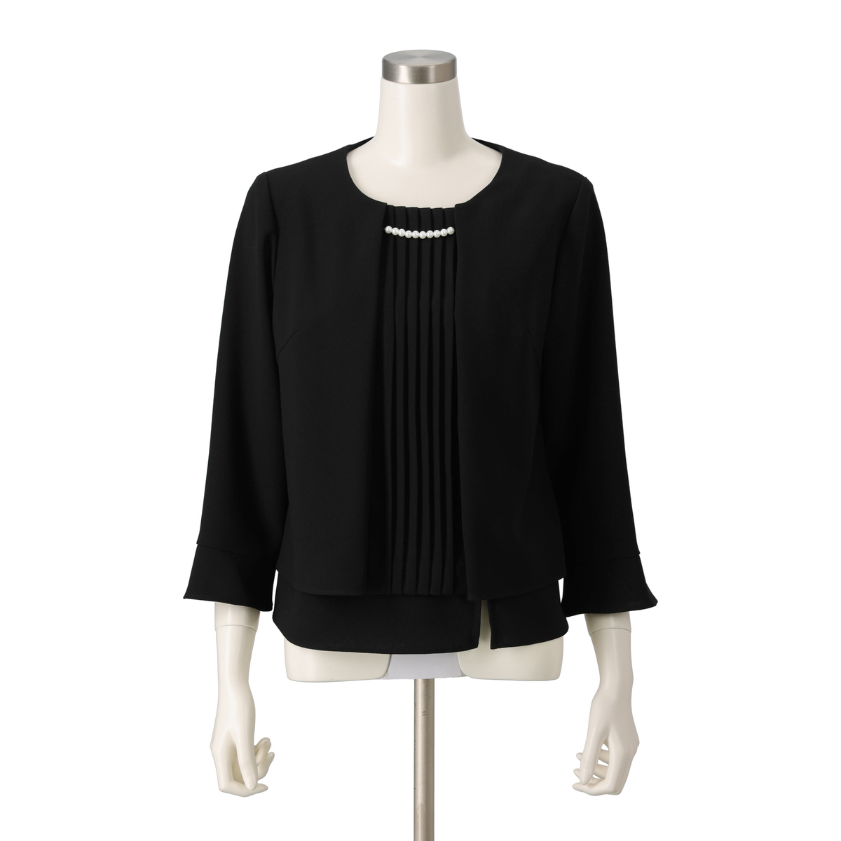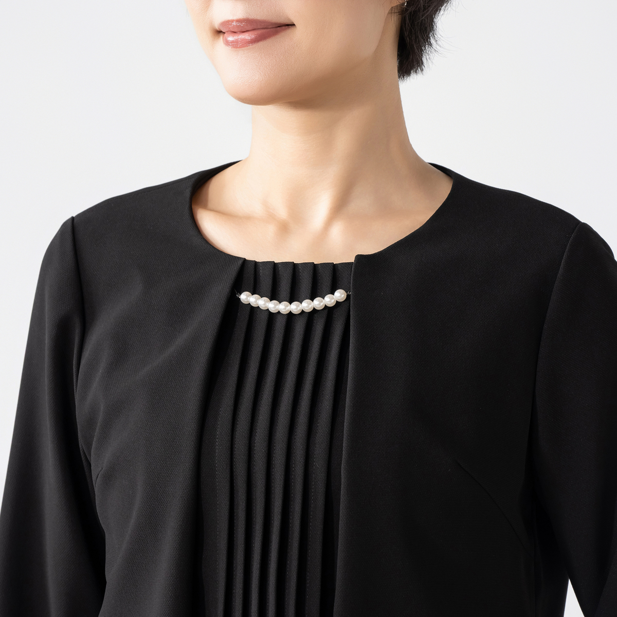 取り外し可能なパール調ネックレス風パーツ付き。アクセサリーや小物の組合せ次第で、喪のシーンだけでなく、お祝いの席や行事、オフィスシーンなどでも活躍します
