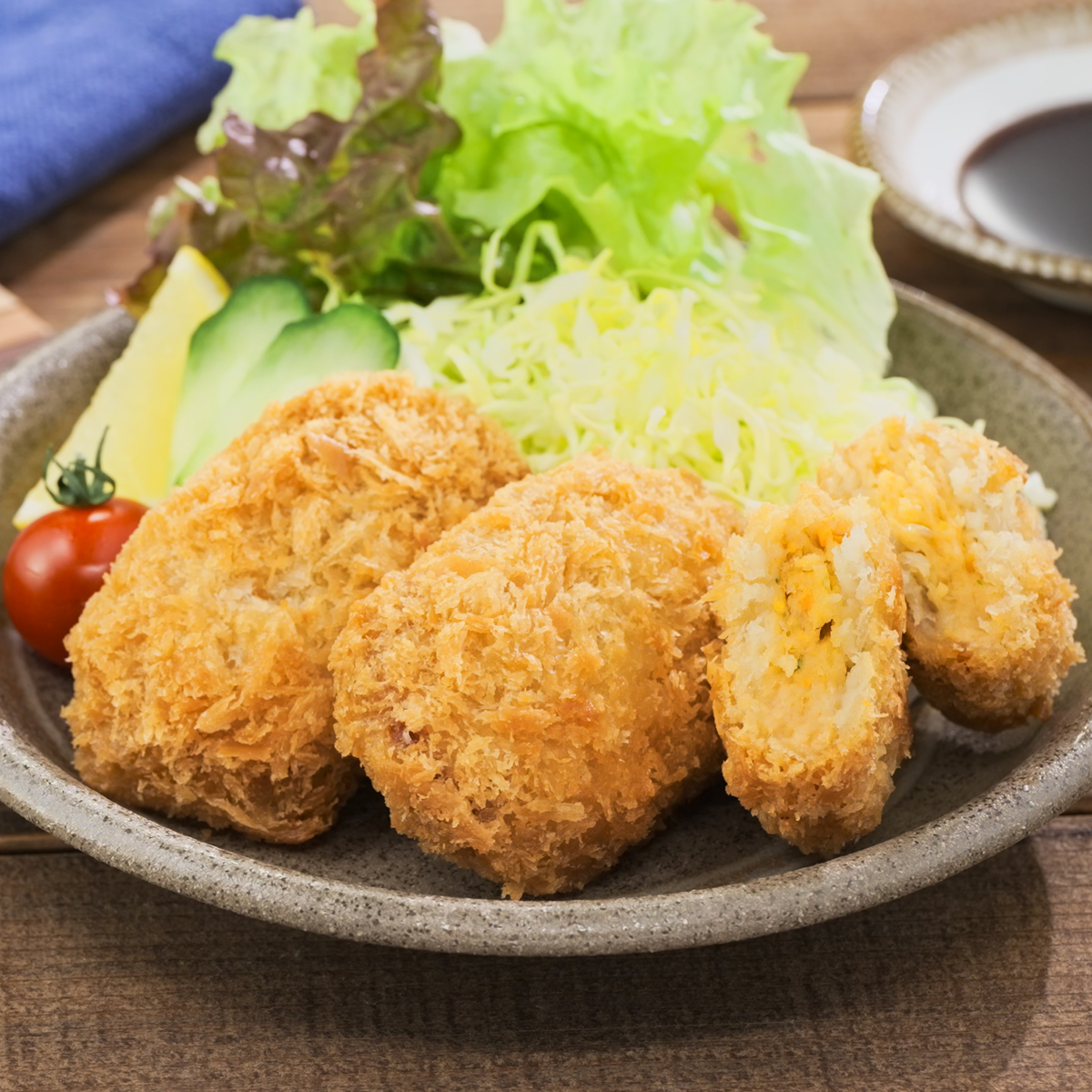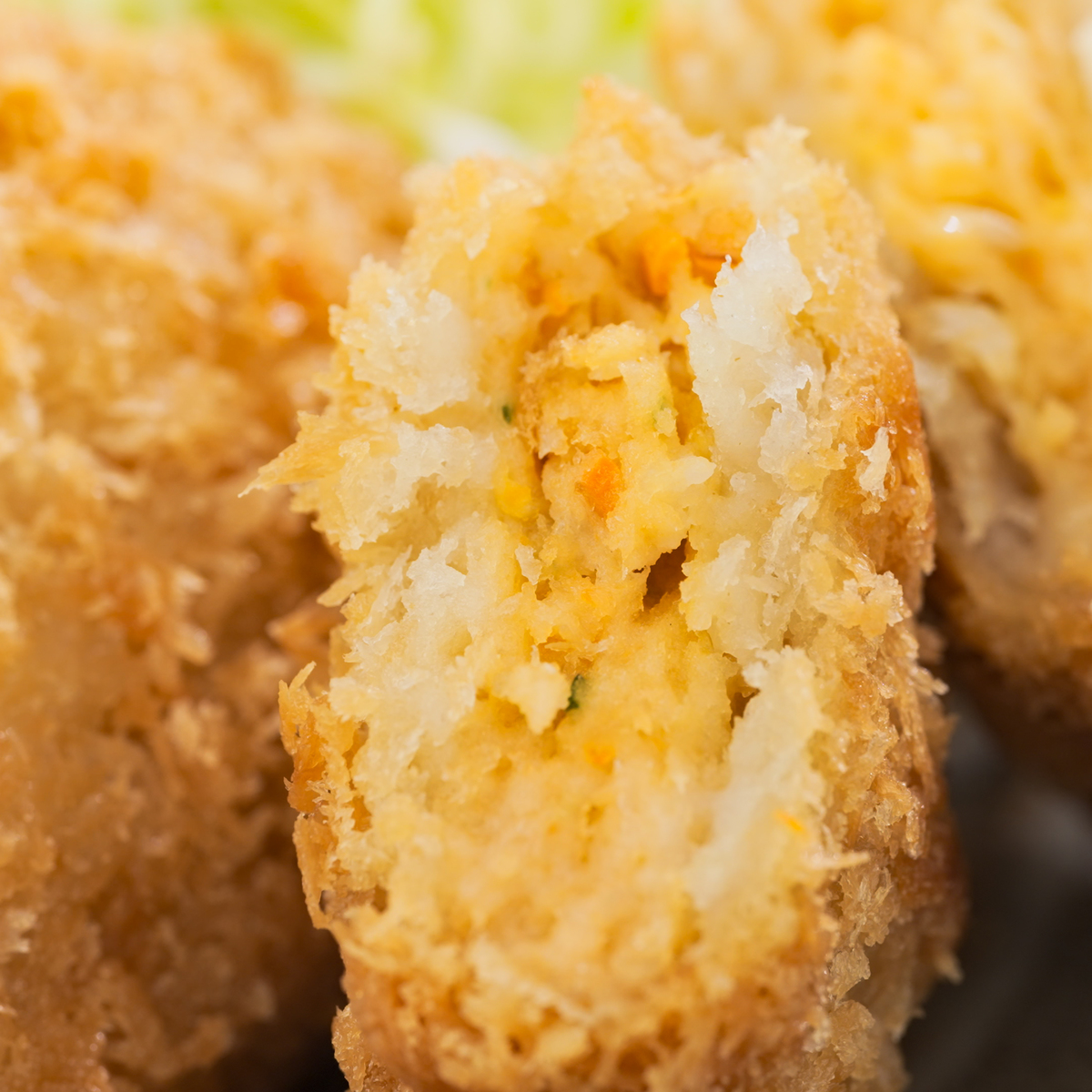 アメリカ(アラスカ)産天然*紅鮭を使用したメンチです。国産野菜使用(玉ねぎ・にんじん・ねぎ)を合わせ、紅鮭の美味しさを引き立てる味わいに。ご飯のおかずやお弁当にもおすすめです
