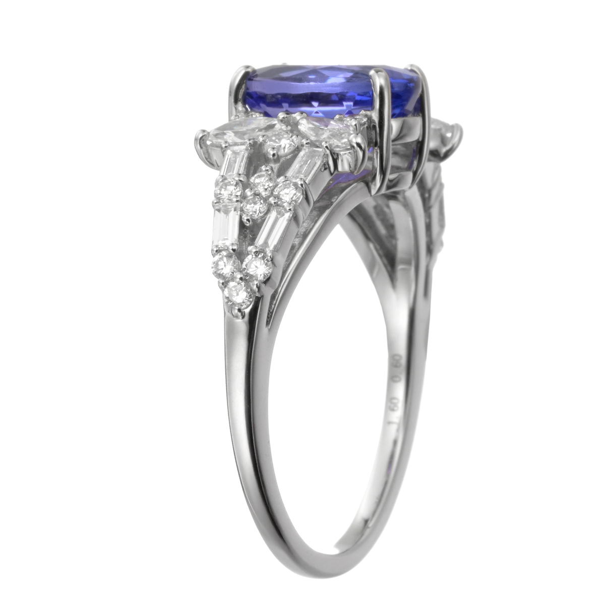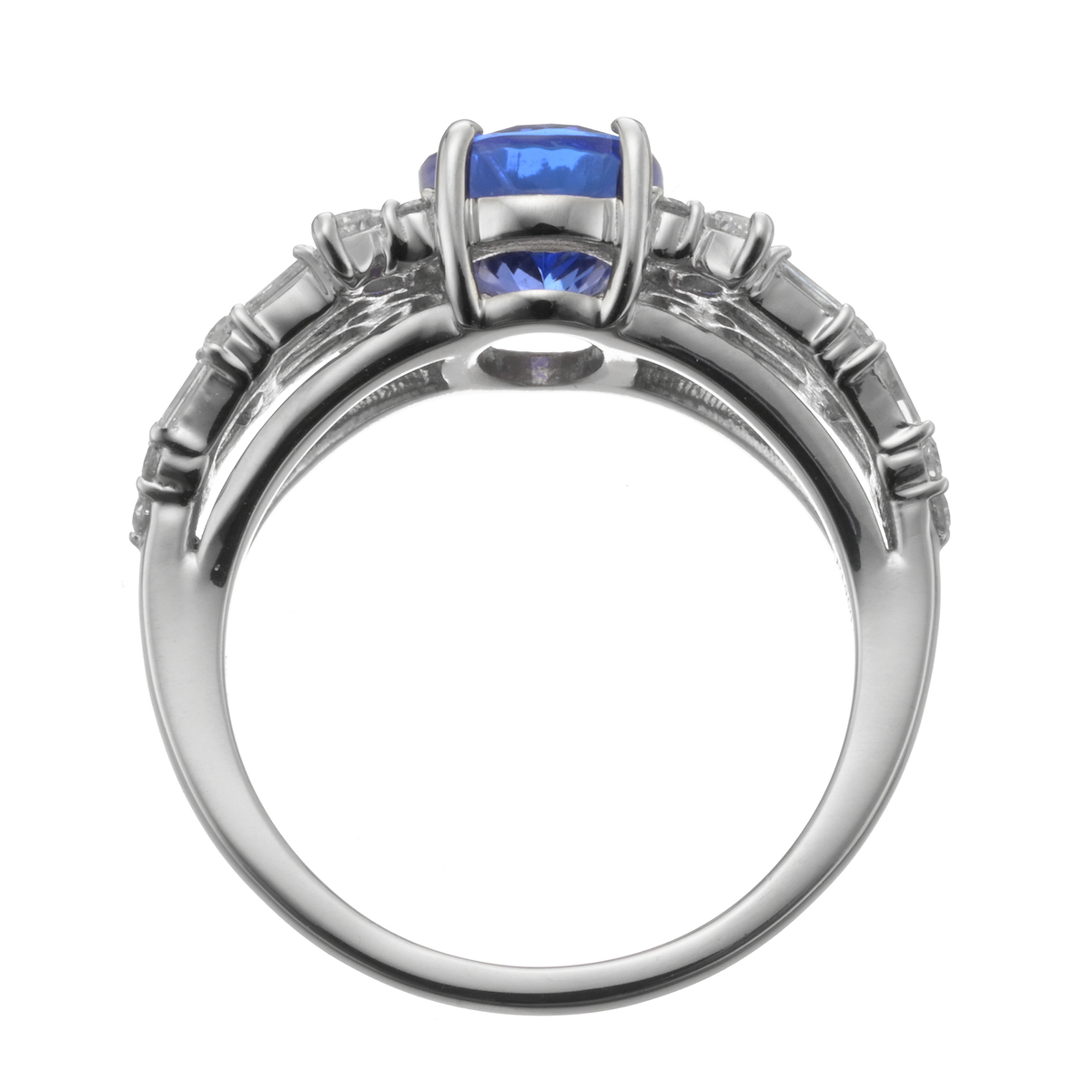 タンザナイトの深い色合いとプラチナの上品な輝きが指元を華やかに演出します