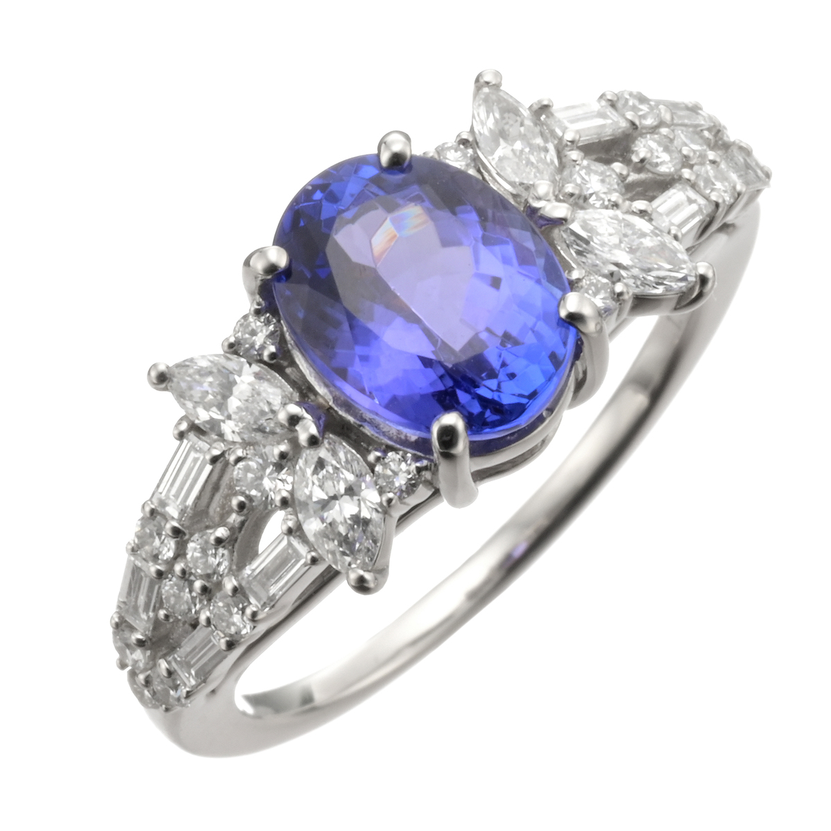 神秘的な色合いが特徴のタンザナイトを使用したリング。濃く鮮やかな色合いが指元を彩ります