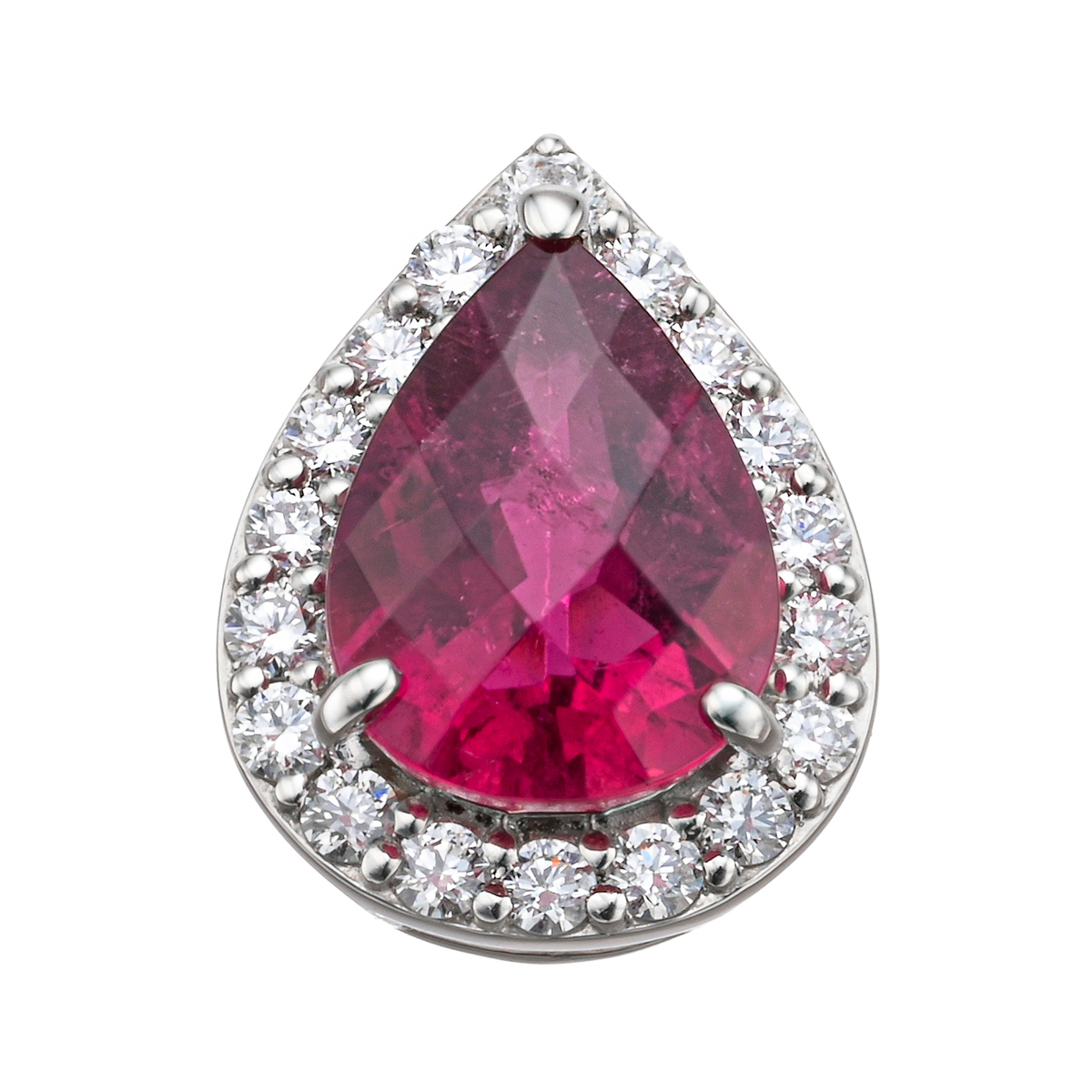 鮮烈のラズベリーピンクを持つ、1.00ctUPのルベライト。存在感あるペアシェイプでチェッカーカットのペンダントヘッドです
