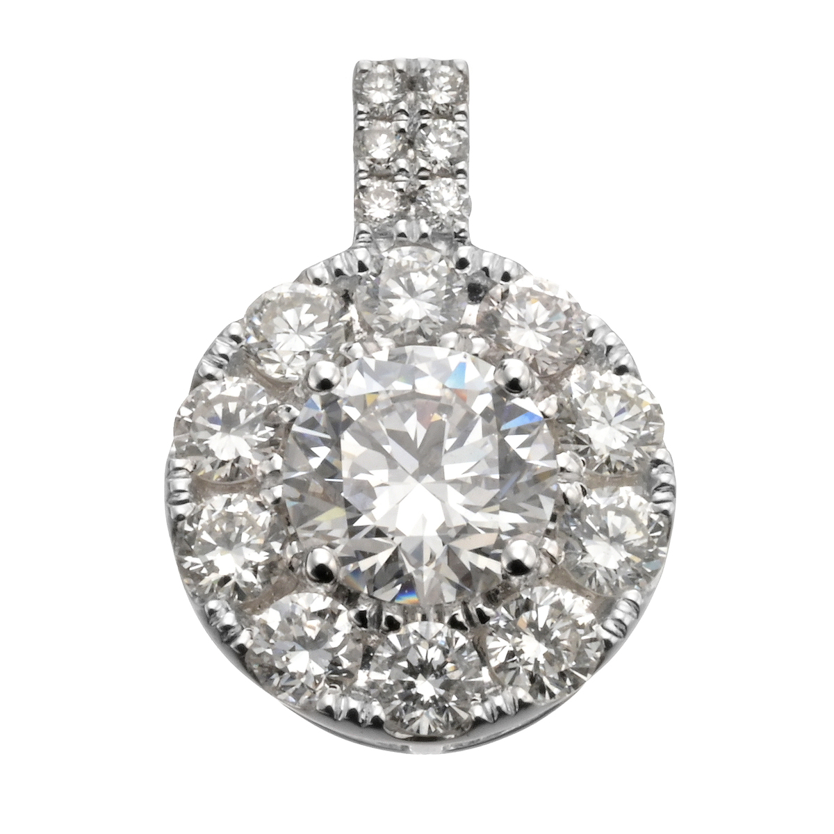 最高のカラーグレードDカラー、VVSのさらに上位のインターナリーフローレス、カットグレード最高クラスのトリプルエクセレント、それらを裏付けるGIAの鑑定書付きのダイヤモンドを中石にあしらったペンダントヘッド。地金にはプラチナを組合せ、脇石には16石のダイヤモンドをあしらった大変華やかなデザインです