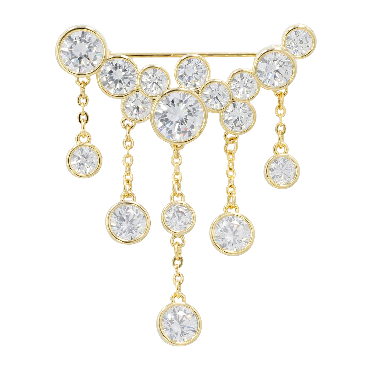 大小さまざまなキュービックジルコニアを立体的に組合せたクラスターデザインのブローチ。光を受け、多方向に煌めきを放ちます