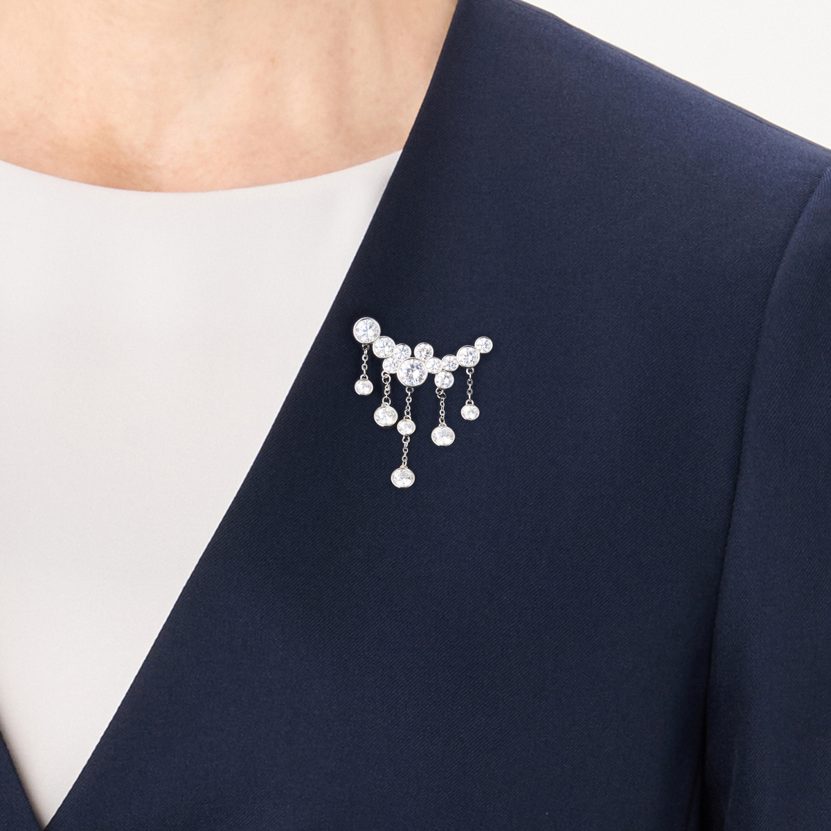 大小さまざまなキュービックジルコニアを立体的に組合せたクラスターデザインのブローチ。光を受け、多方向に煌めきを放ちます