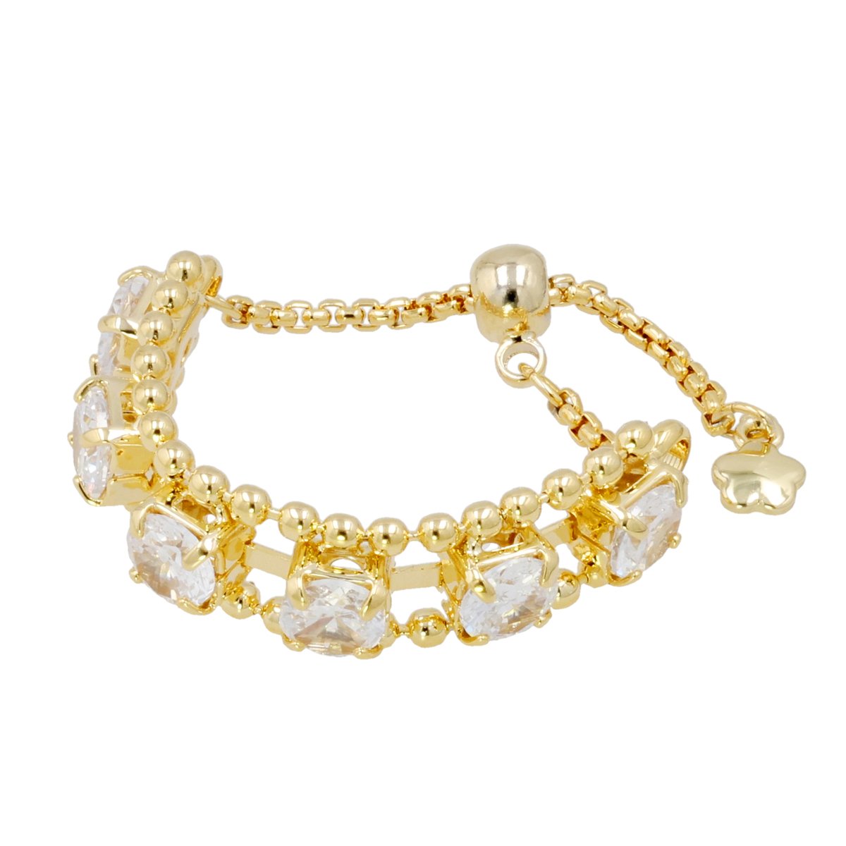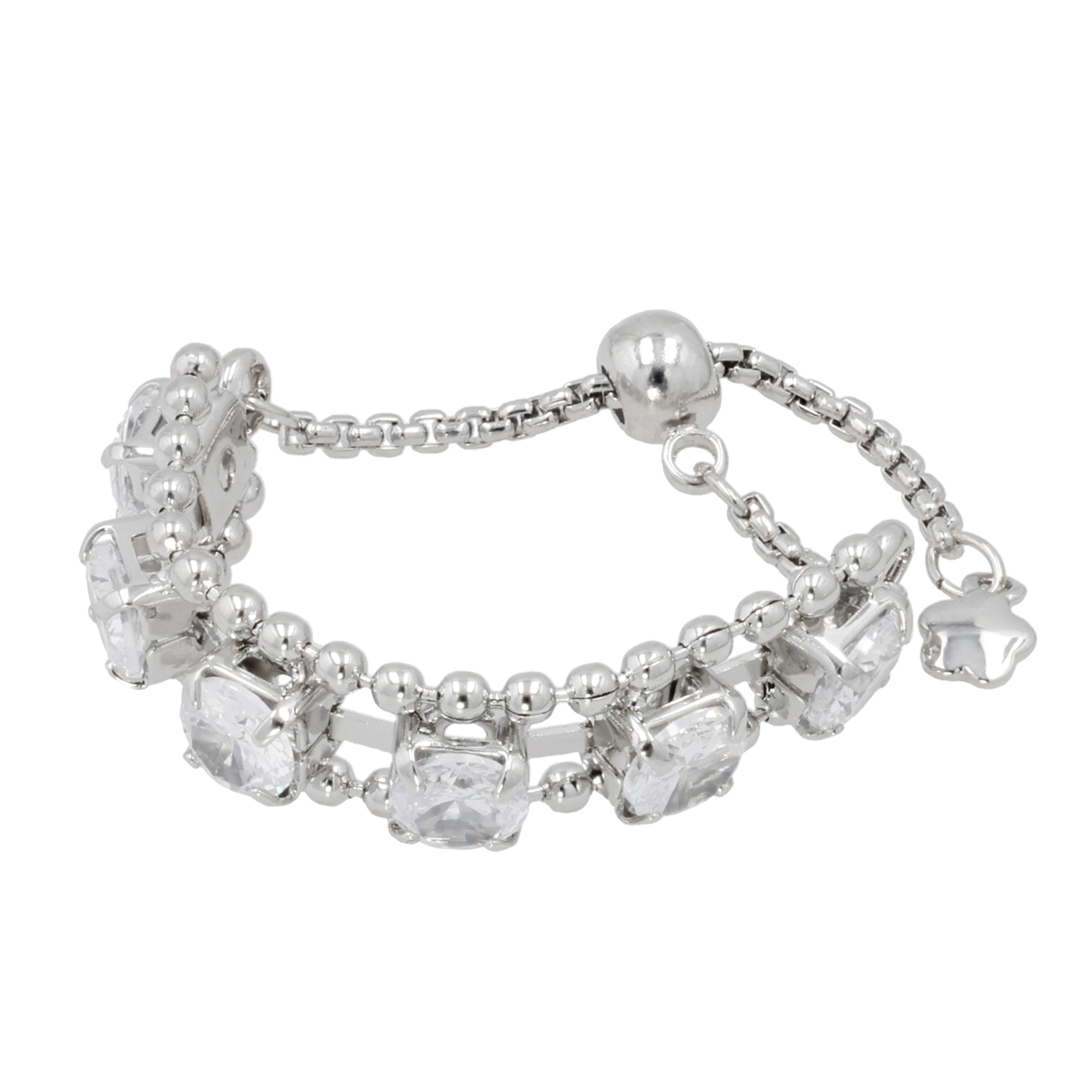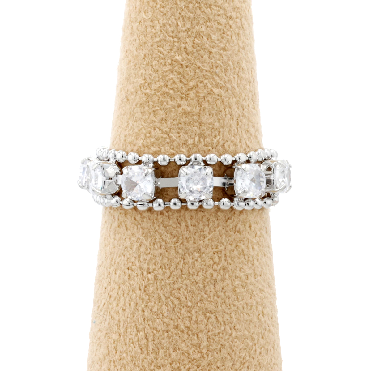 キュービックジルコニアをあしらったチェーンリング。上下を縁取るボールチェーンが光を受けて華やかに煌めきます