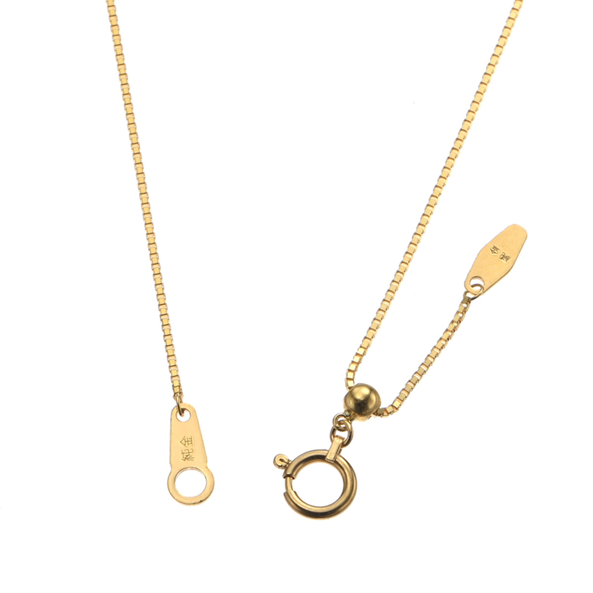 なめらかに仕上げられたチェーンは肌なじみもよく、単体でも華やかな存在感。約43cmと約60cmの2サイズ展開で、どちらも長さ調節ができるスライド式アジャスター付き。純金ならではの美しさをお楽しみください