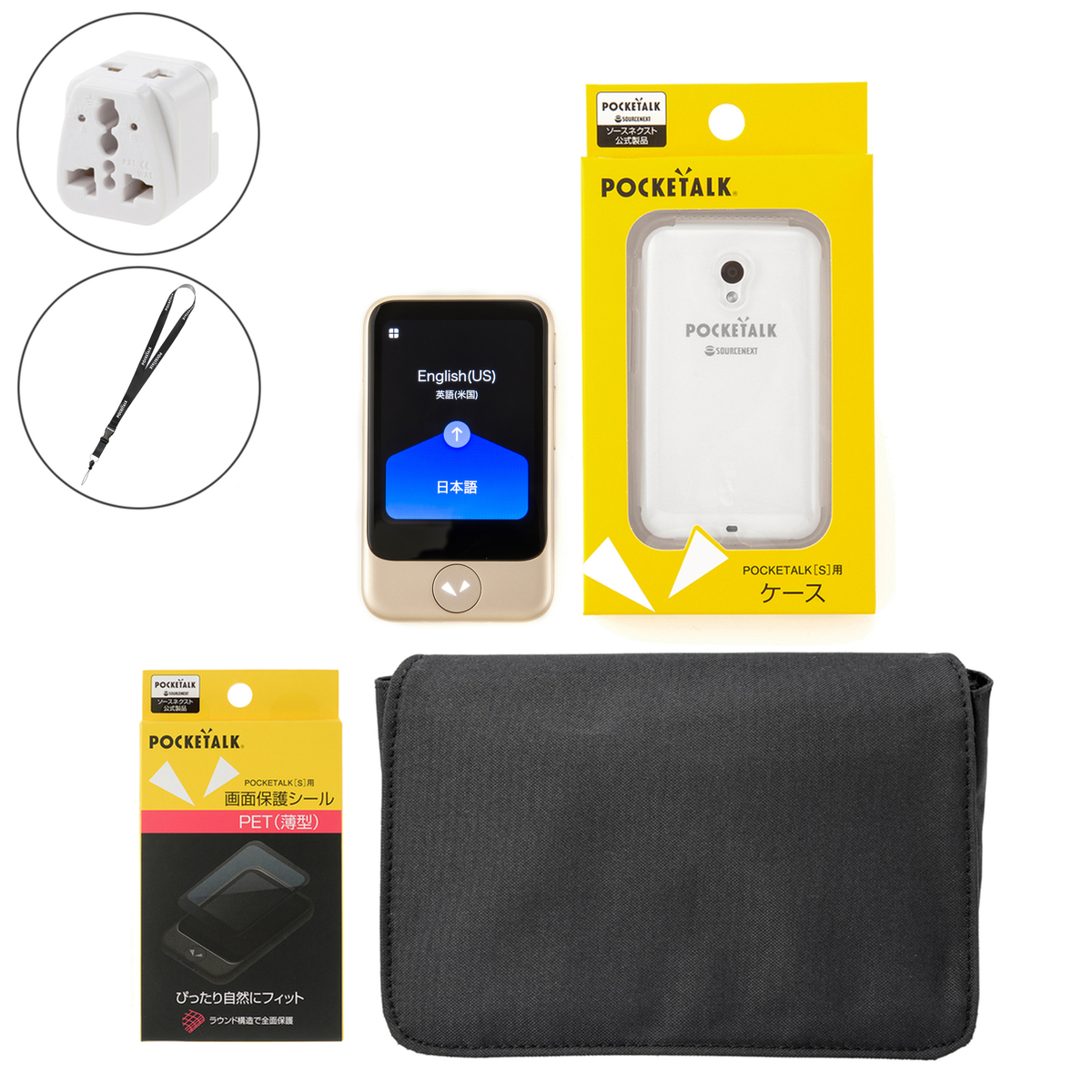 [サイズ] 約全長30×幅2.5cm [重量] 約20g [注意事項] ※付けたまま激しい運動をすると落下する恐れがありますので、ご注意ください ※本製品は紛失や落下を完全に防ぐための商品ではありません。本製品の利用による本体の紛失、破損、汚れ、および内部データの破損には一切保証いたしかねます。あらかじめご了承ください 【中国製】 [セット内容] ・夢の翻訳機 ポケトークS ・POCKETALK S 専用ケース クリア ・POCKETALK ストラップ[DIGI+] ・POCKETALK S 専用画面保護シール ・海外用変換プラグ[A/C/O/SE/BFタイプ対応] ・POCKETALK S 専用ポーチ ※廃棄する時は一般のゴミと一緒に捨てないでください。本製品にはリチウムイオン電池を使用しているため、一般のゴミと一緒に捨てると火災の原因になります ※使用しなくなった製品はお住まいの地方自治体の廃棄処理に関連する条例または規則に従ってください ※異臭、異音、発煙、発熱などの異常がみられた場合は、直ちに電源を切って使用を中止する ※湿気やほこりの多い場所や極端に高温・低温になる場所での使用、充電、保管はしない ※使用中や充電中に長時間触れない ※タッチディスプレイを強く押したり、先の尖ったもので操作しない ※航空機内では航空会社の指示に従い適切に使用する ※病院や高精度な制御や微弱な信号を取り扱う電子機器がある場所では、管理者の指示に従い適切に使用する ※医用電気機器などを装着している場合や、自宅療養などにより植込み型医療機器以外の医用電気機器を使用する場合は、医用電気機器メーカーもしくは販売業者に、電波による影響について確認してから使用する ※電気製品の近くで使用すると電波干渉が発生する恐れがあります。その場合は使用場所を変えるか、電源を切って使用を中止(電波の発射を中止)して下さい