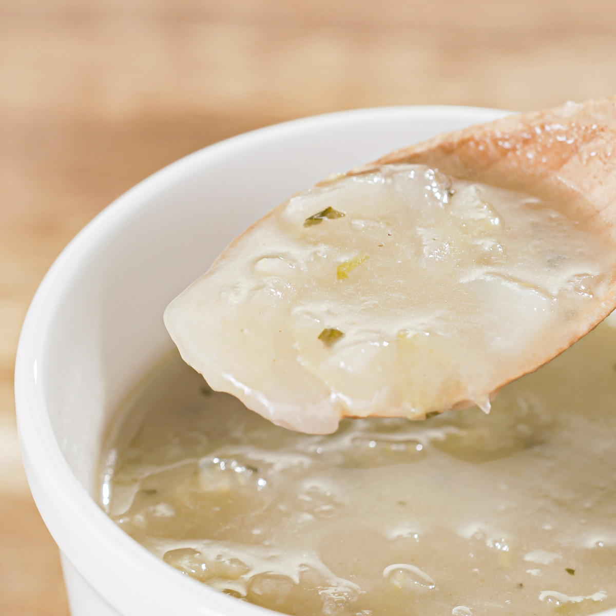 じっくりと炒めた玉葱のジューシーな甘みと牛肉のおいしさが溢れる、洋食仕立ての飴色のスープです。脂身と赤身のバランスが良いので、スープにすると牛肉のとろっとしたおいしさを味わえます