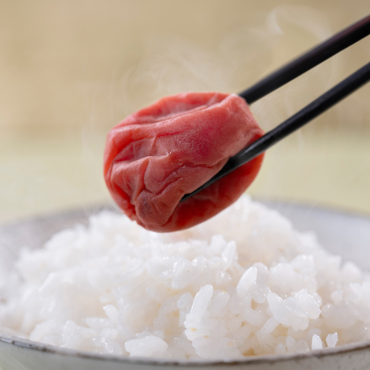 国産の赤しそ液を使って、じっくりと漬け込みました。適度な酸味でご飯ともよく合います。可食部100gあたり塩分約8%(*2)。ジューシーな果肉と、しそのさっぱり感を味わえる中粒2Lサイズの梅干しです