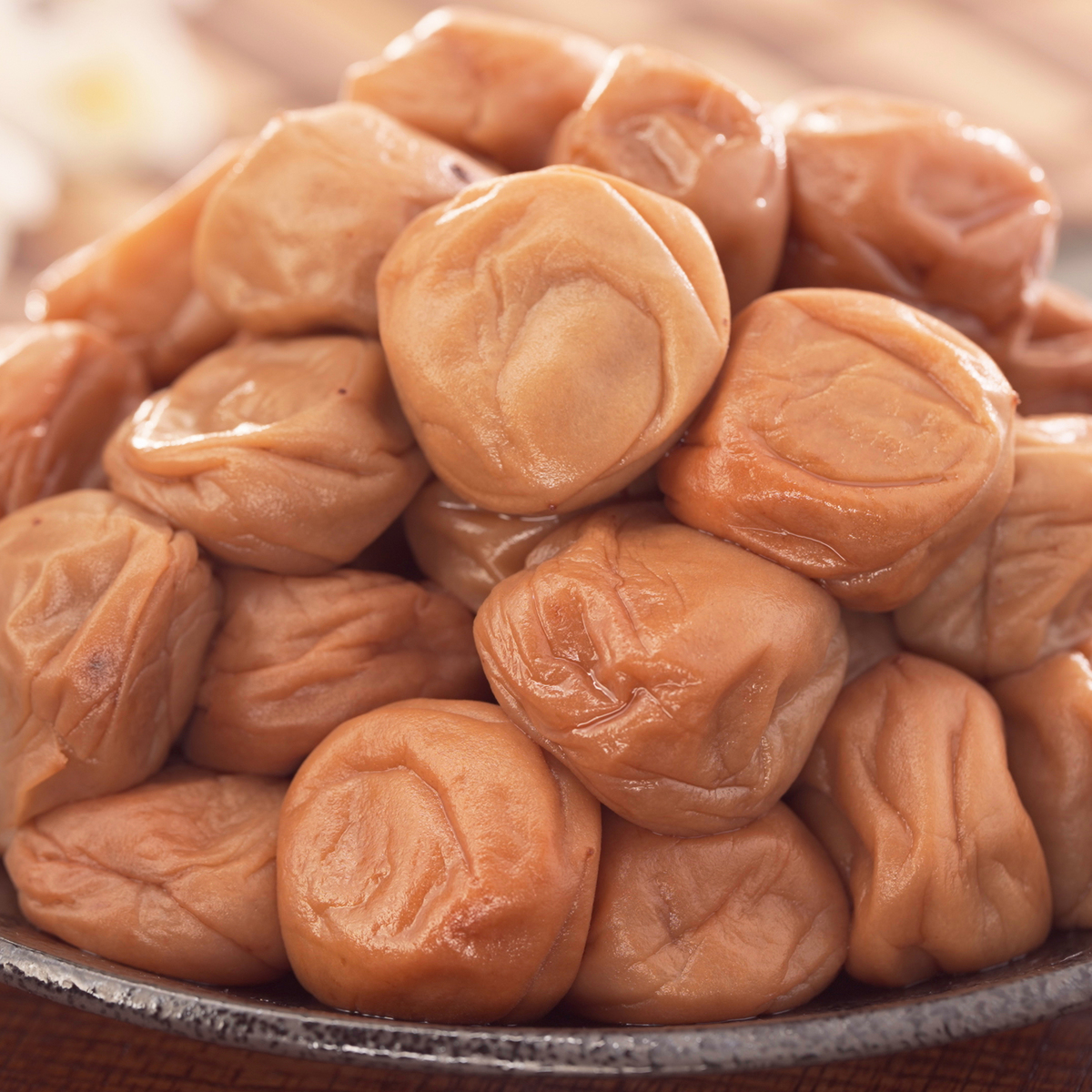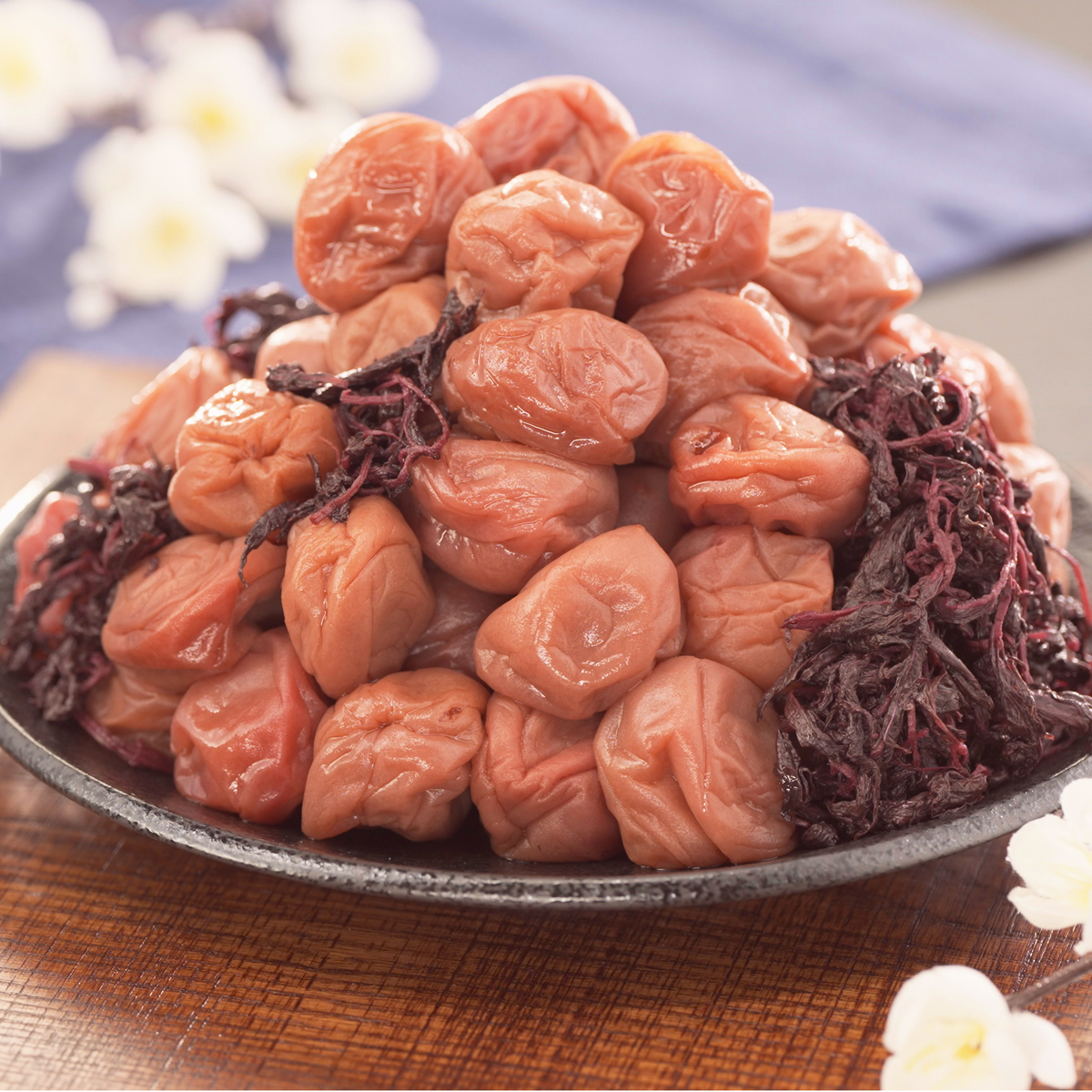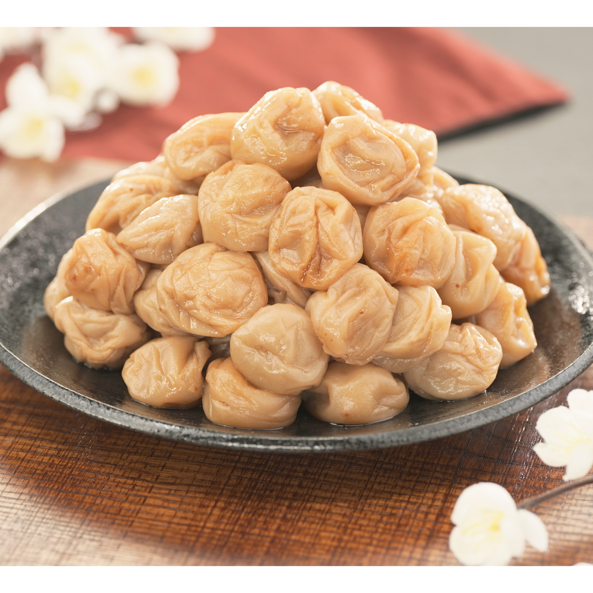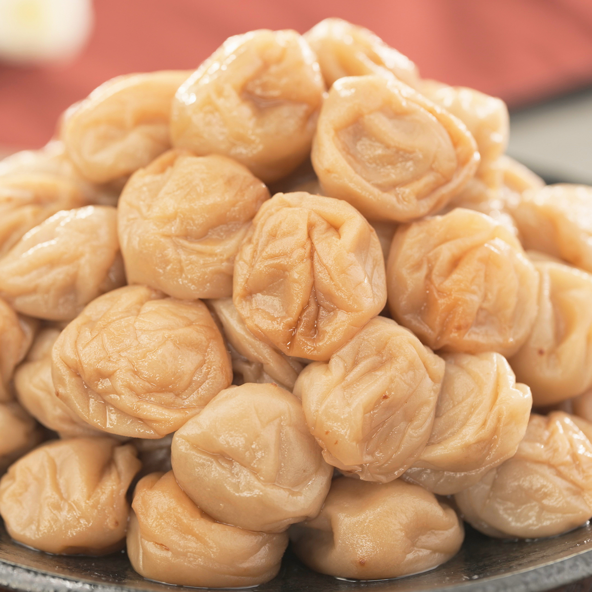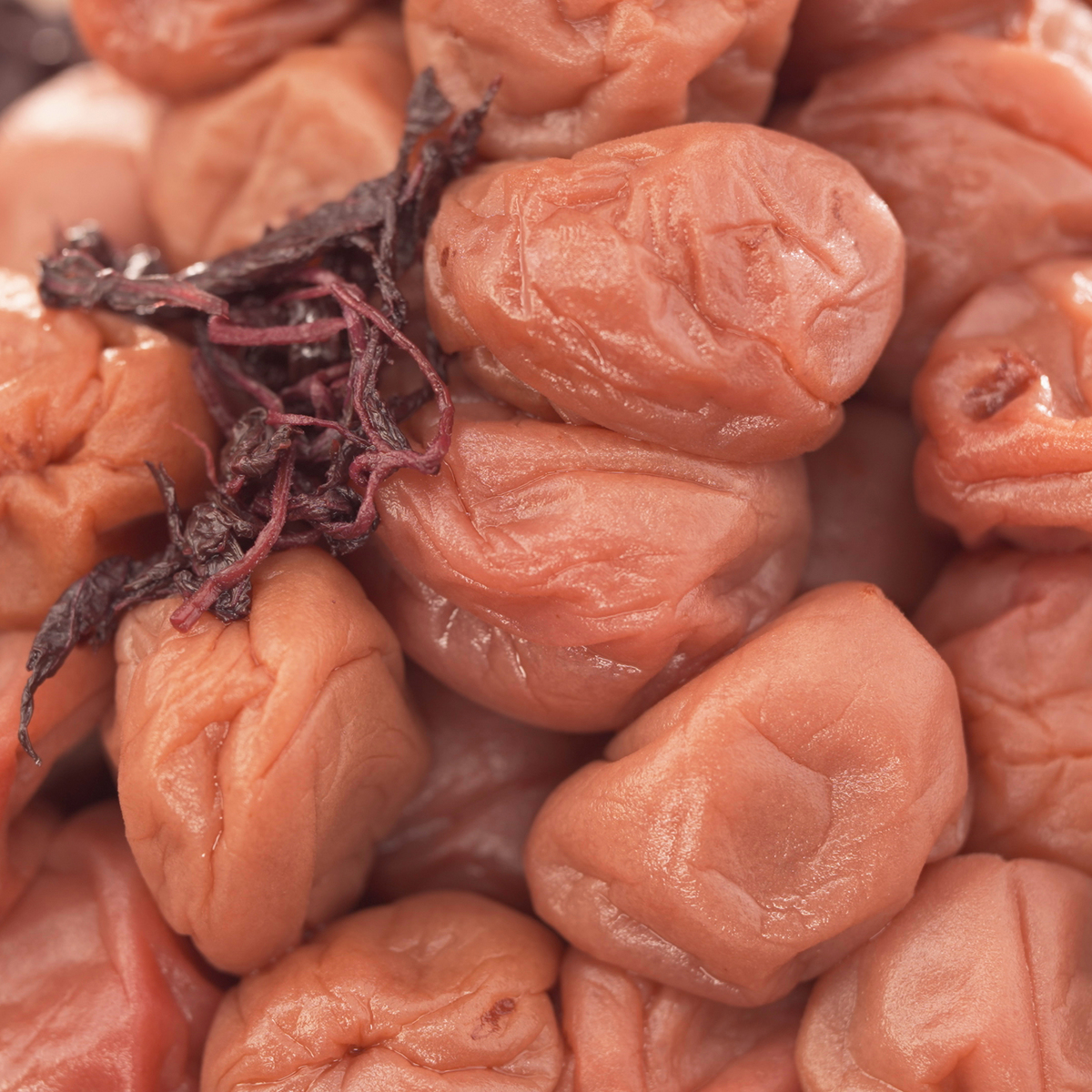 国産の赤しそ液を使って、じっくりと漬け込みました。適度な酸味でご飯ともよく合います。可食部100gあたり塩分約8%(*2)。ジューシーな果肉と、しそのさっぱり感を味わえる中粒2Lサイズの梅干しです