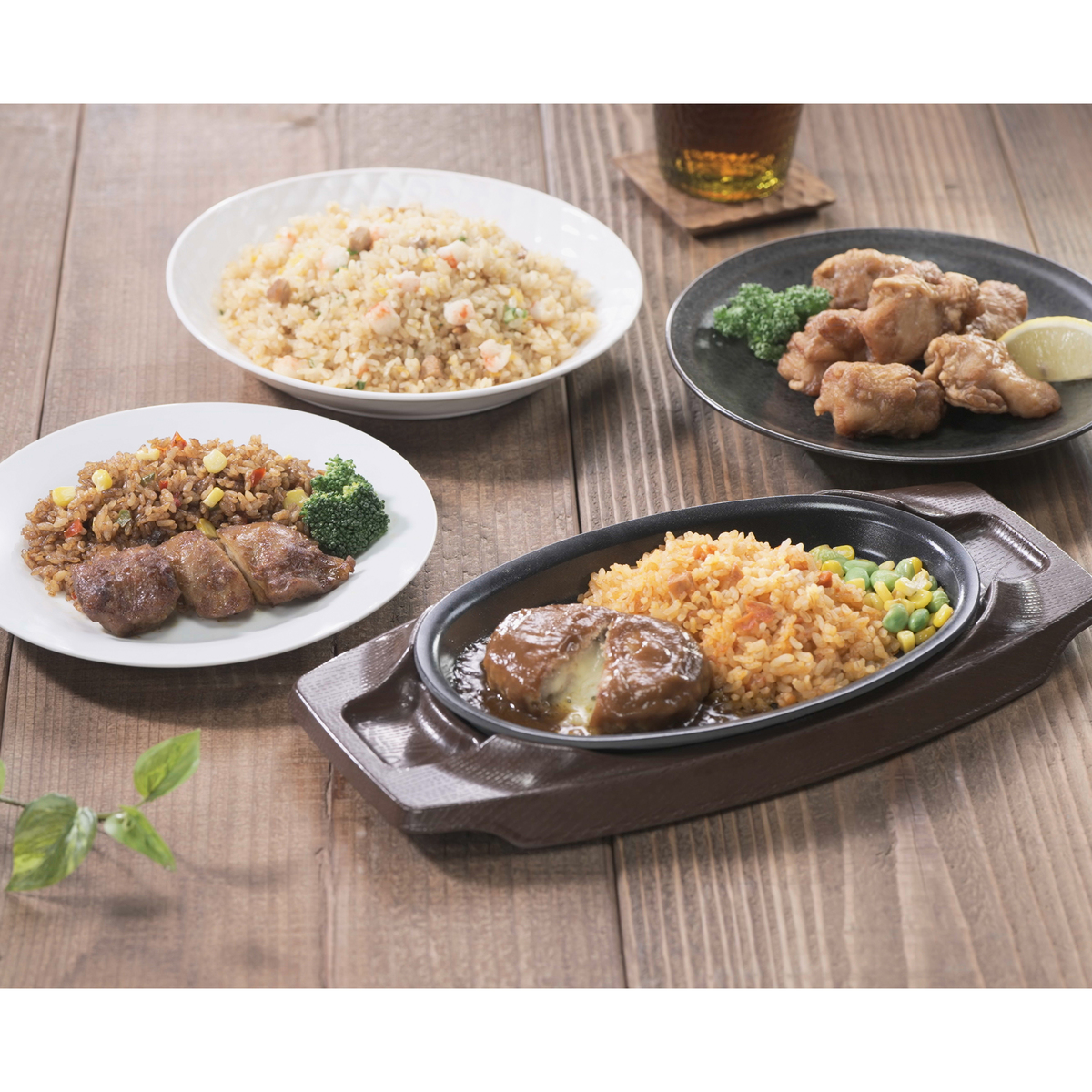 [アレルギー物質特定原材料8品目] 卵、小麦、乳 [セット内容] ・ガスト チーズinハンバーグ&チキンライス260g ・バーミヤン本格炒飯430g ・ジョナサン タンドリーチキン&メキシカンピラフ 250g ・から好し 唐揚げ230g [賞味期限] 出荷時点で賞味期限まで120日以上ある商品をお届けします(唐揚げは180日以上) [保存方法] 開封前:ー18℃以下で保存してください 開封後:お早めにお召し上がりください [注意事項] ※一度解凍したものは、品質が変わることがありますので、再び凍らせないでください ※ご家庭の冷凍庫は温度変動が大きいので、購入後は賞味期限内であっても早くお召し上がりください <チーズinハンバーグ&チキンライス> ※加熱後は熱くなったトレイや蒸気によるやけどにご注意ください ※袋ごと電子レンジ不可 ※オート(自動)不可 ※調理時間は、機種によって異なる場合があります。 冷たい場合は、10秒ずつ追加熱してください ※加熱しすぎると、味や食感が変わることがありますので、ご注意ください <炒飯> ※袋ごとレンジ不可(アルミ使用のため) ※やけど注意 ※オート(自動)不可 ※米や卵などの焦げがみられることがあります ※調理前は油脂が白く固まっていることがあります ※開封後はお早めに召しあがりください ※捨てる時は自治体の区分に従ってください <タンドリーチキン&メキシカンピラフ> ※加熱後は、熱くなったトレイや蒸気によるやけどにご注意ください <唐揚げ> ※袋ごとレジ不可(アルミ使用のため) ※やけど注意 ※オート(自動)不可 ※鶏肉が赤みをおびていることがありますが、中心まで加熱しております [原料原産地] チーズinハンバーグ&チキンライス:ハンバーグ【食肉(鶏肉、豚肉、牛肉)、たまねぎ、つなぎ(パン粉、液卵白)、その他】(国内製造)、米(国産) 炒飯:米(国産) タンドリーチキン&メキシカンピラフ:鶏肉(ブラジル)、米(国産) [原産国] 日本 唐揚げ:タイ [原材料] ■ガスト チーズinハンバーグ&チキンライス260g: ハンバーグ【食肉(鶏肉、豚肉、牛肉)、たまねぎ、つなぎ(パン粉、液卵白)、その他】(国内製造)、米(国産)、野菜(えだまめ、とうもろこし、たまねぎ)、大麦、トマトケチャップ、鶏肉、トマトペースト、オニオンソテー、植物油脂、デミグラスソース、還元水あめ、食塩、砂糖、小麦粉、しょうゆ、チキンエキス、ブイヨン、 ワイン、マーガリン、りんごピューレ、ぶどう酢、みそ、加工油脂、香辛料/調味料(アミノ酸等)、増粘剤(加工でん粉)、加工でん粉、着色料(カラメル、カロチノイド)、pH調整剤、香料、ポリリン酸Na、酸味料、(一部に小麦・卵・乳成分・牛肉・大豆・鶏肉・豚肉・りんごを含む) ■バーミヤン本格炒飯430g: 米(国産)、液卵、焼豚、かに風味かまぼこ、みりん、ねぎ、ショートニング、食塩、しょうゆ、還元水あめ、ウスターソース、でん粉、ほ たて貝エキス、オイスターソース、しょうがペースト、中華調味料、香辛料、ぶどう糖、いため油(なたね油、こめ油)/調味料(アミノ 酸等)、加工でん粉、着色料(カラメル、紅麹、カロチノイド)、甘味料(カンゾウ、ステビア)、酸味料、貝Ca、(一部に小麦・卵・乳成 分・ごま・大豆・鶏肉・豚肉を含む) ■ジョナサン タンドリーチキン&メキシカンピラフ 250g: 鶏肉(ブラジル)、米(国産)、野菜(たまねぎ、とうもろこし、ブロッコリー、緑ピーマン、赤ピーマン)、大麦、植物油脂、トマトケチャップ、半固体状ドレッシング、食塩、カレー粉、豚脂、香辛調味料、チキンエキス、ブイヨン、ミルポワパウダー、 しょうがペースト、にんにくペースト、トマトペースト、砂糖、香辛料/調味料(アミノ酸等)、pH調整剤、カラメル色素、加工でん粉、増粘剤(加工でん粉、増粘多糖類)、香辛料抽出物、(一部に卵・乳成分・大豆・鶏肉・豚肉・りんご・ゼラチンを含む) ■から好し 唐揚げ 230g: 鶏肉(もも)、しょうゆ、植物油脂、還元水あめ、香辛料、粉末卵白、食塩、衣(でん粉)、揚げ油(パーム油、大豆油)/加工でん粉、調味料(アミノ酸等)、キシロース、炭酸Na、(一部に小麦・卵・乳成分・大豆・鶏肉を含む)