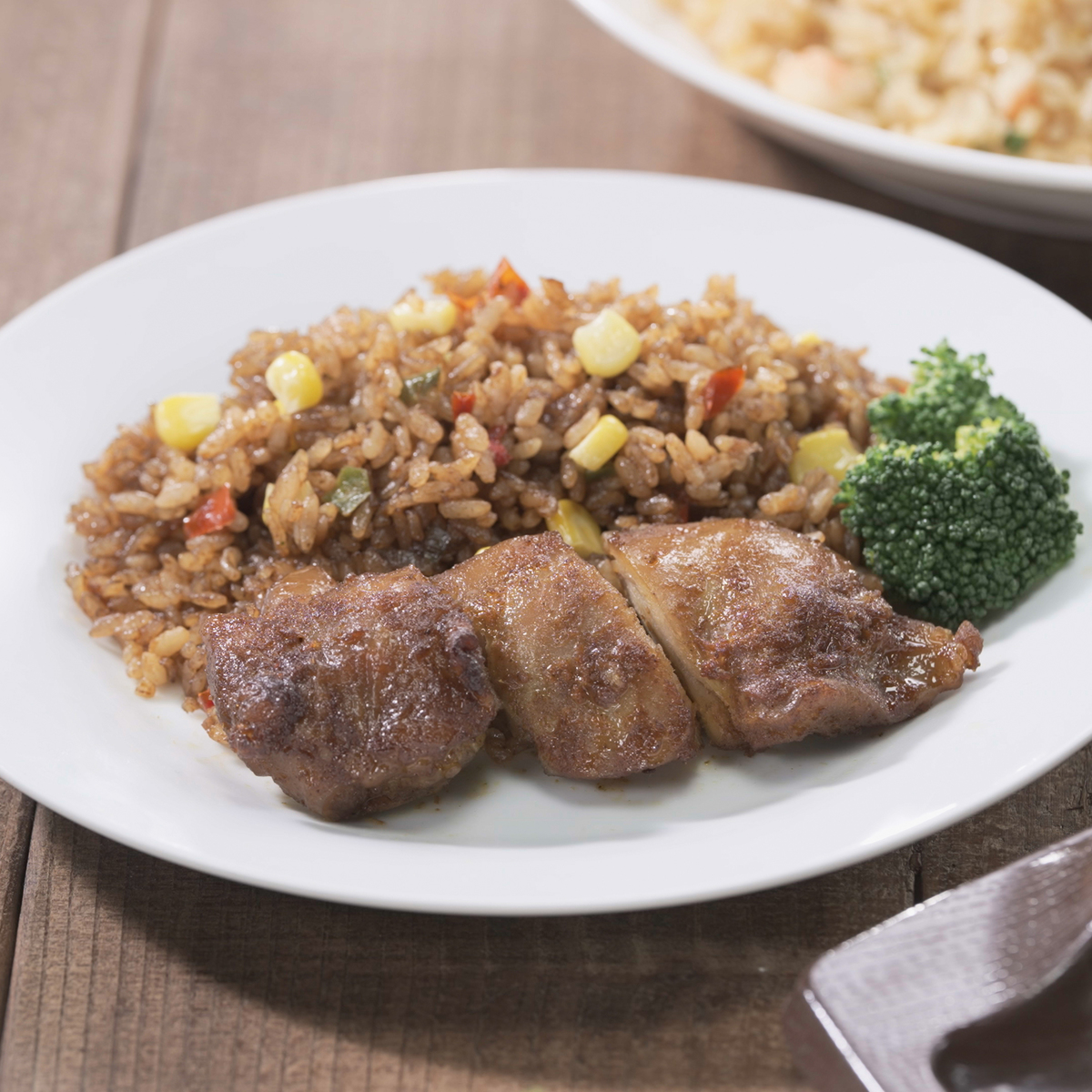 タンドリーチキンとメキシカンピラフをワンプレートに。食べやすいように辛味を抑えた味付けです