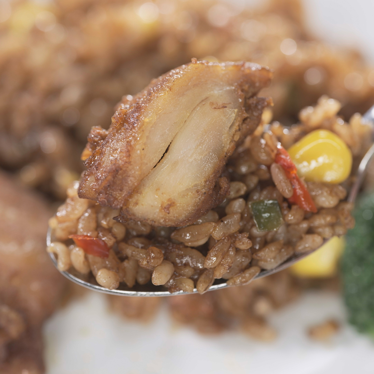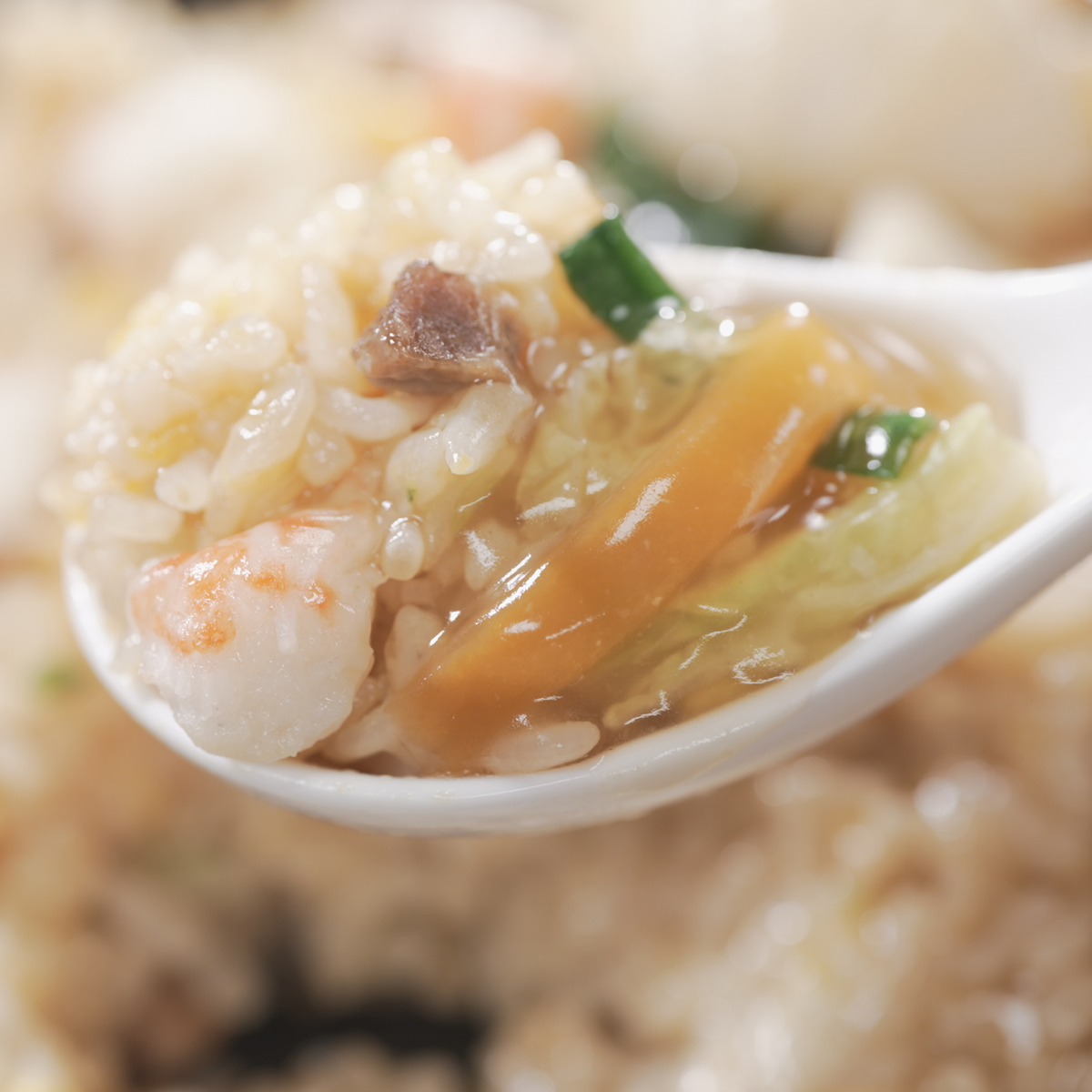 オイスターソース、ほたてエキス、香味油を合わせた、奥行きのある旨味と味わい。鉄鍋で炒めたような、パラッとほぐれる食感です。国内の工場で生産しています