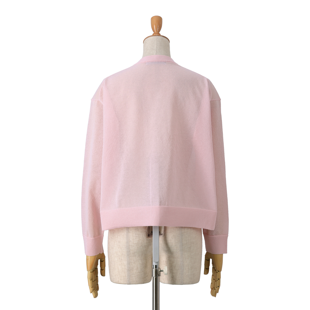 細いポリエステル糸とマットなレーヨンを厳選し、特殊な撚糸加工により、全体がほのかな透け感と程よいハリ感に。通気性があり、軽やかに羽織っていただけます