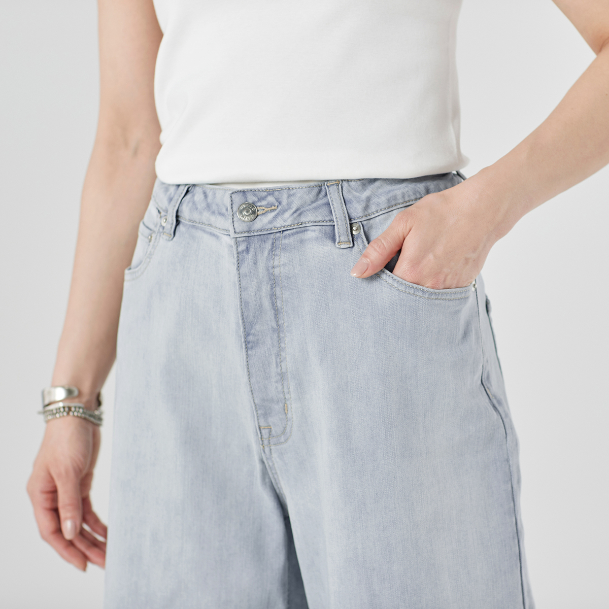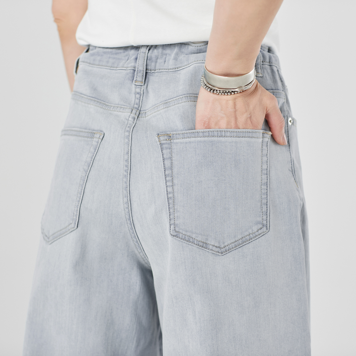 軽量でストレッチ性のある素材で仕立てたパンツ。からだのラインを拾いにくい適度なハリ感があり、ワイドなシルエットが旬な雰囲気を演出。撥水加工を施し、水を弾きやすいのも魅力です