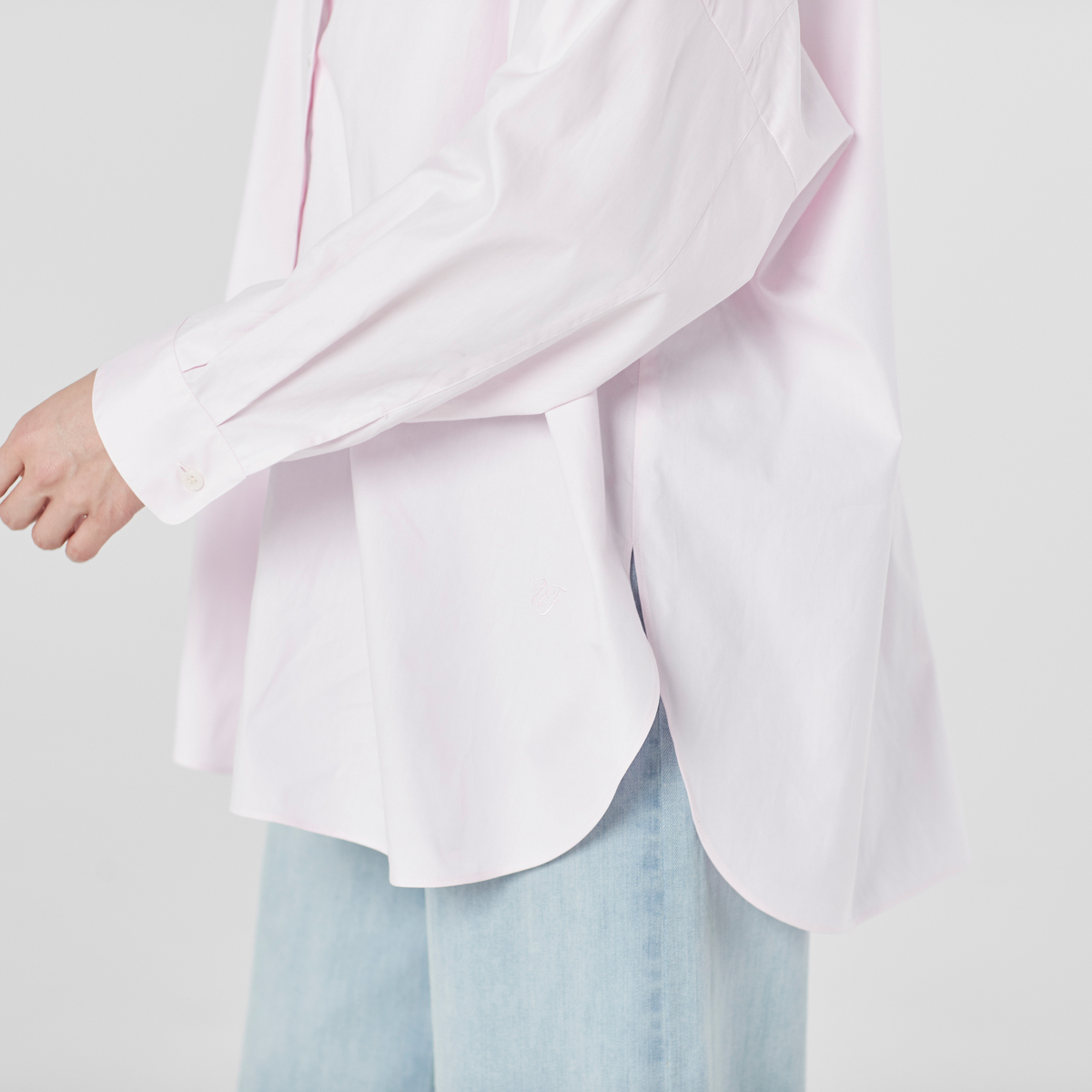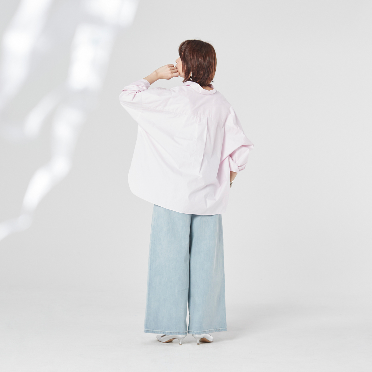 1枚で着映えするポンチョシルエットのオーバーシャツ。分量感のある身頃が自然なこなれ感を生み、サッと羽織るだけで印象が決まります。裾に施したさりげないワンポイント刺繍もアクセントになります