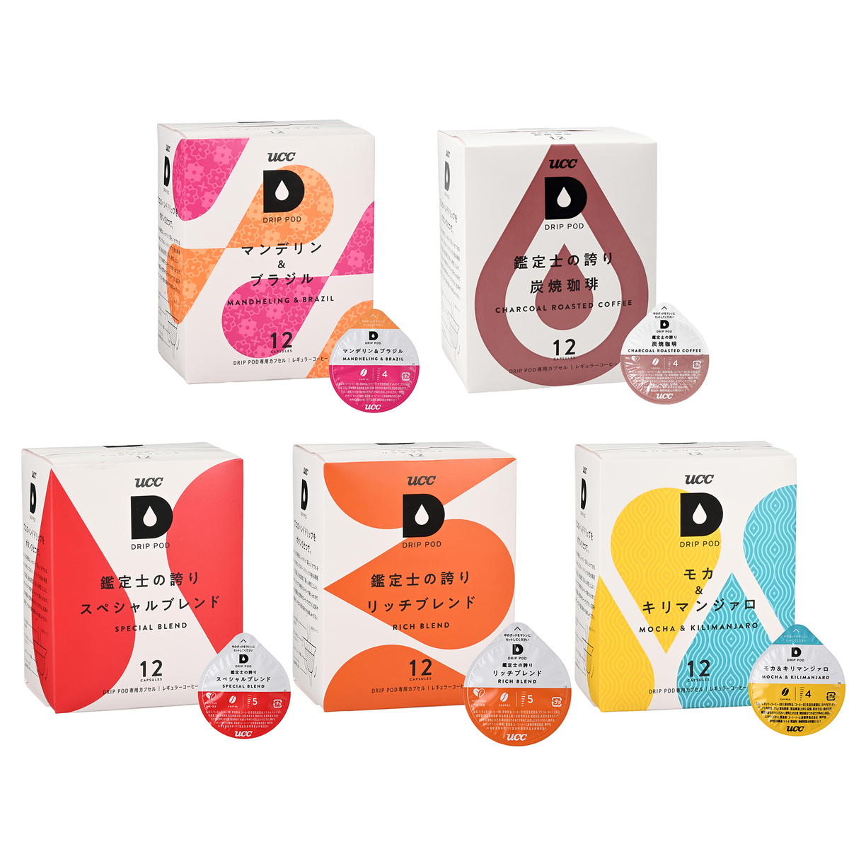 [アレルギー物質特定原材料8品目] なし [内容量] 84g(7g×12個) ※この商品には専用の抽出マシンが必要となります [保存方法] 開封前:直射日光、高温多湿をさけてください 開封後:できるだけ早めにお召し上がりください [お召し上がり方] 専用抽出マシンの湯量を1(70ml)に合わせ、グラスに氷をたっぷり入れ、コーヒー抽出モードを選択してドリップすることをおすすめしますが、お好みに応じてご調整ください [注意事項] ※この商品には専用の抽出マシンが必要となります。それぞれのマシンの使用方法については、取扱説明書をご覧ください ※マシンの説明書に従って正しく安全にお使いください ※コーヒーを抽出する際、火傷にご注意下さい ※ポッド天面部の色のついた点はコーヒー粉が挟まったものです。安心してお召し上がり下さい [原料原産地] コーヒー豆(生豆生産国名:ブラジル、ベトナム) [原産国] 日本 [セット内容] ・UCC ドリップポッド カプセル スペシャルブレンド ・UCC ドリップポッド カプセル リッチブレンド ・UCC ドリップポッド カプセル マンデリン&ブラジル ・UCC ドリップポッド カプセル モカ&キリマンジァロ ・UCC ドリップポッド カプセル 炭焼珈琲 [原材料] コーヒー豆(生豆生産国名:ブラジル、ベトナム) [原材料] コーヒー豆(生豆生産国名:ブラジル、ホンジュラス) [原材料] コーヒー豆(生豆生産国名:インドネシア、ブラジル) [原材料]コーヒー豆(生豆生産国名:エチオピア、タンザニア) [原材料] コーヒー豆(生豆生産国名:ブラジル、ベトナム)