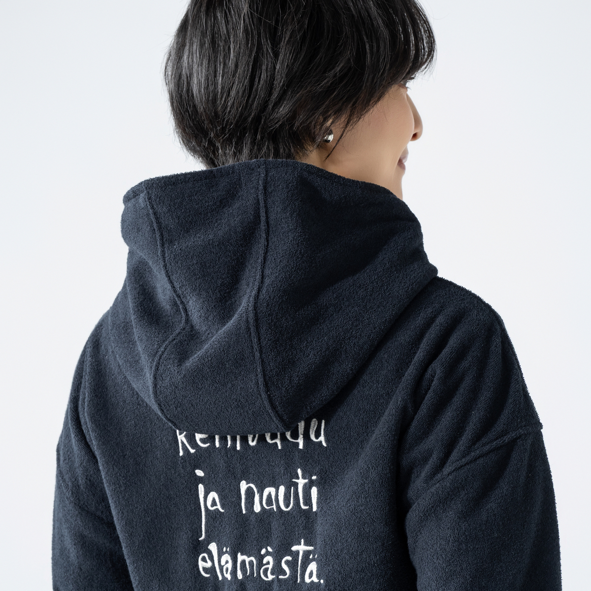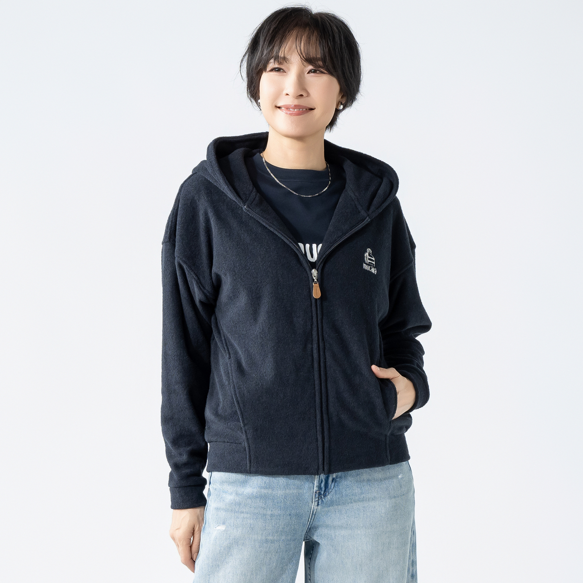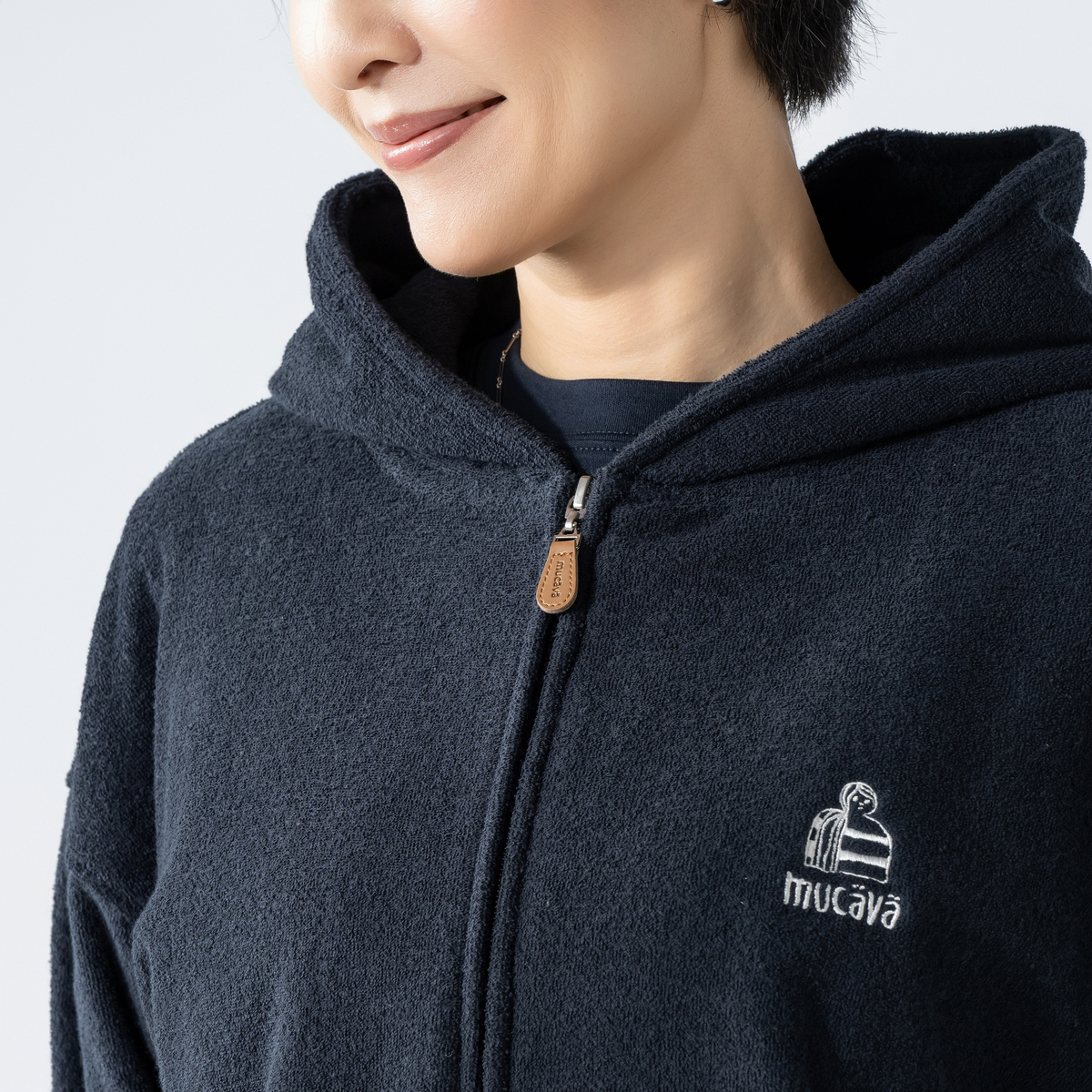 シンプルなジップアップデザインのフーディ。ユニセックス感覚で着用でき、ドロップショルダーとゆったりしたアームホールが特徴。着心地がよく、部屋からお出かけまで幅広く使えます