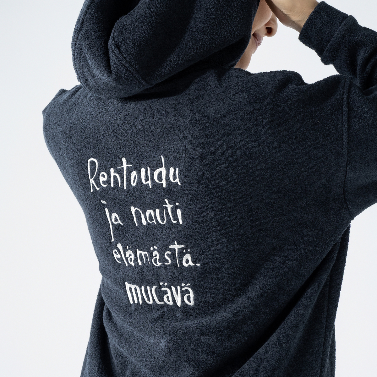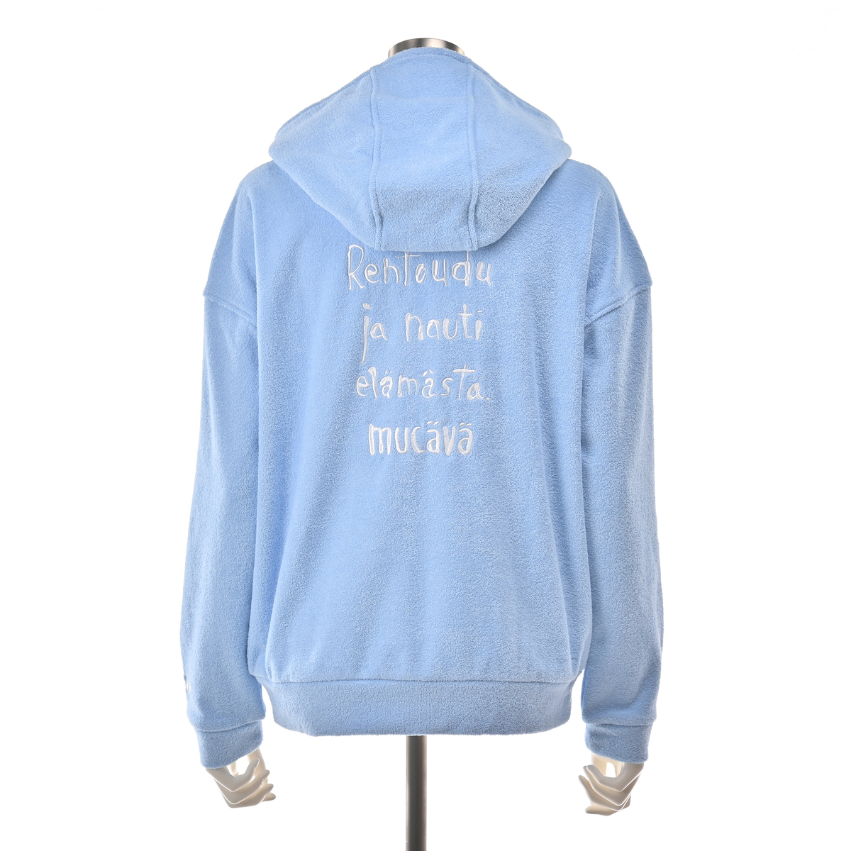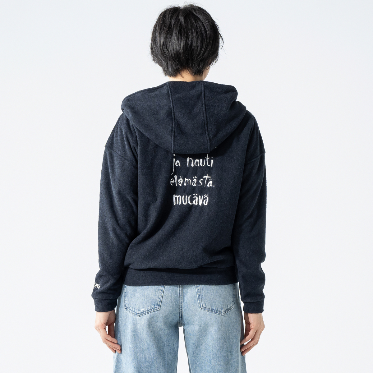 シンプルなジップアップデザインのフーディ。ユニセックス感覚で着用でき、ドロップショルダーとゆったりしたアームホールが特徴。着心地がよく、部屋からお出かけまで幅広く使えます
