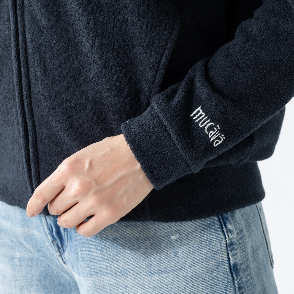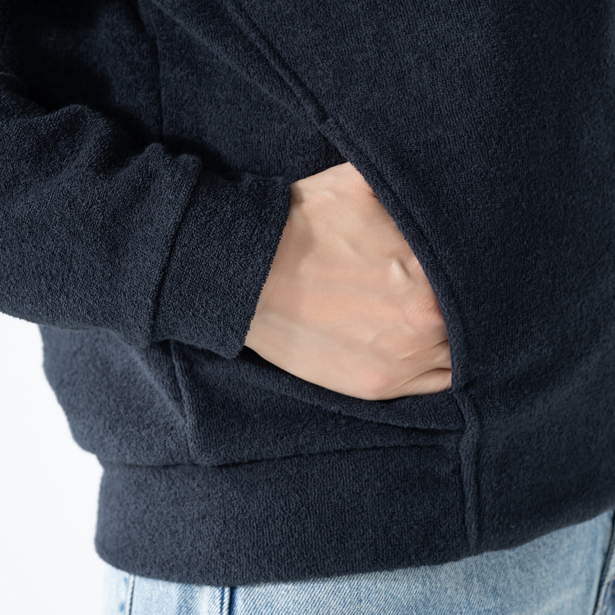 コットン素材をベースに、両面にパイル加工を施した贅沢な生地を使用。やわらかな肌あたりで、汗をしっかり吸収します。毛足は短めで軽やかさがあり、春夏でも快適。IFMC.加工を施した機能素材です