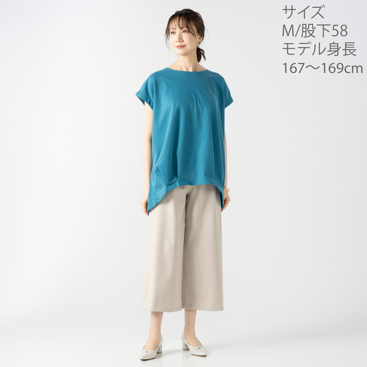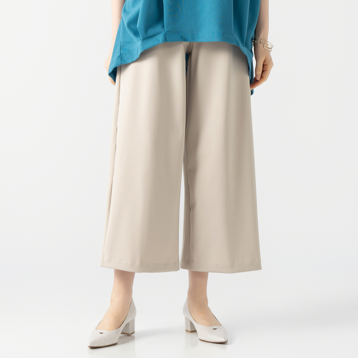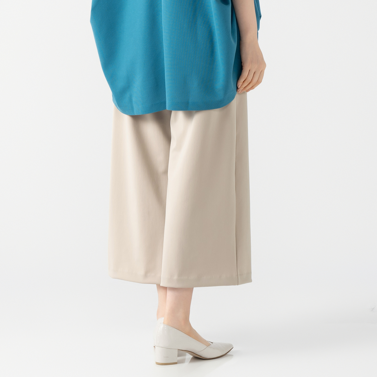 レギンスとステテコを組合せたレギテコパンツ。腰周りにゆとりがあり、脚を長く、きれいに見せてくれるセミワイドシルエットです