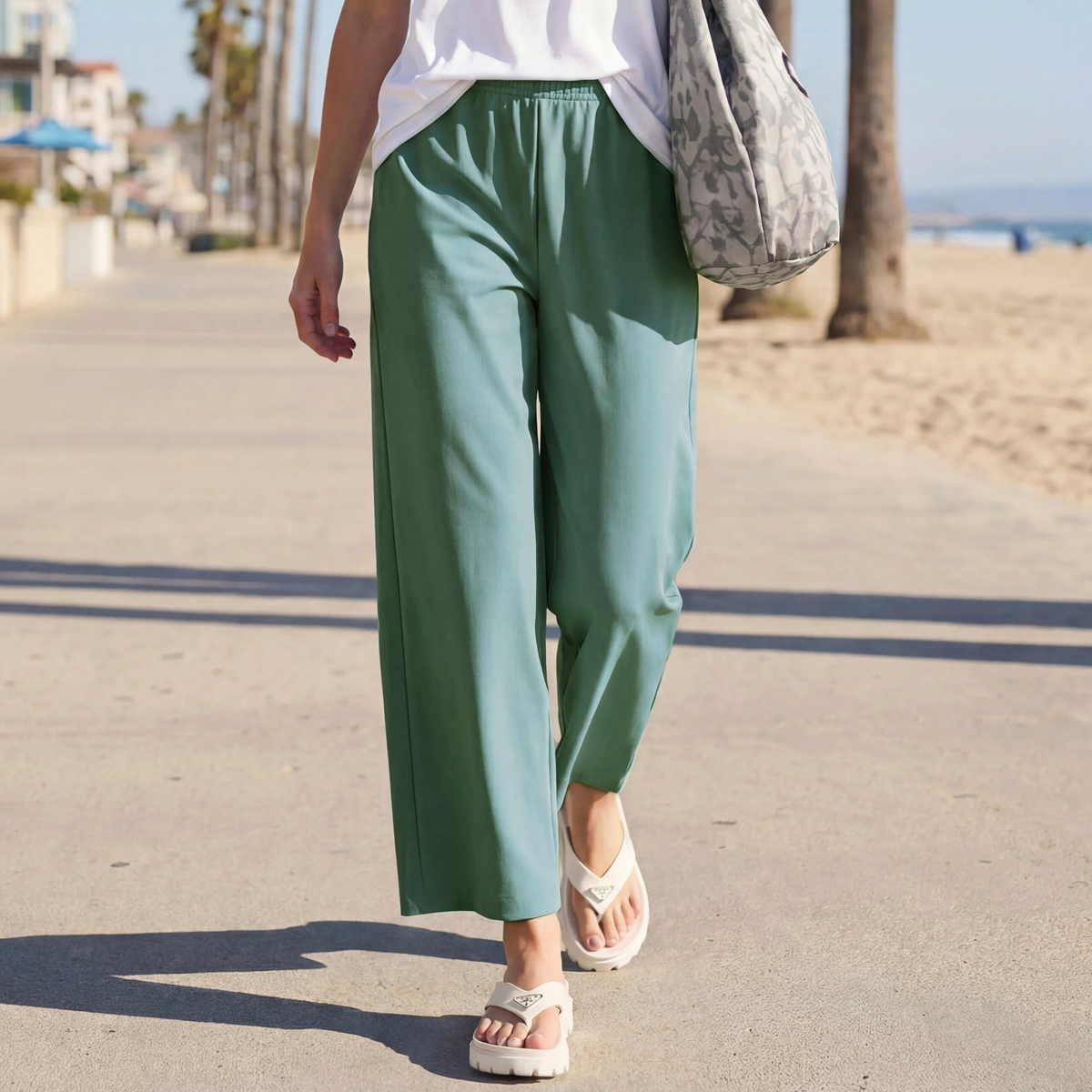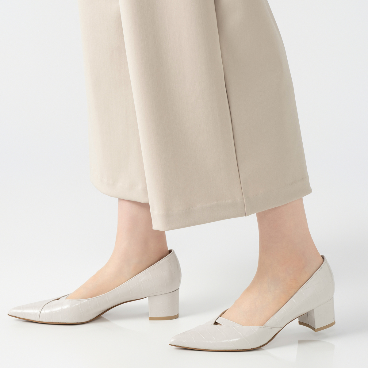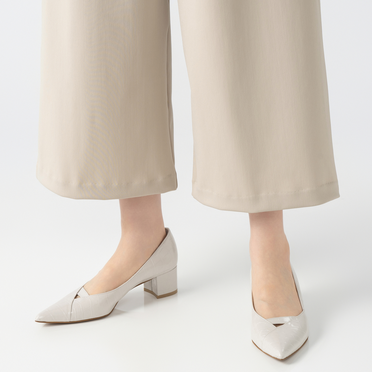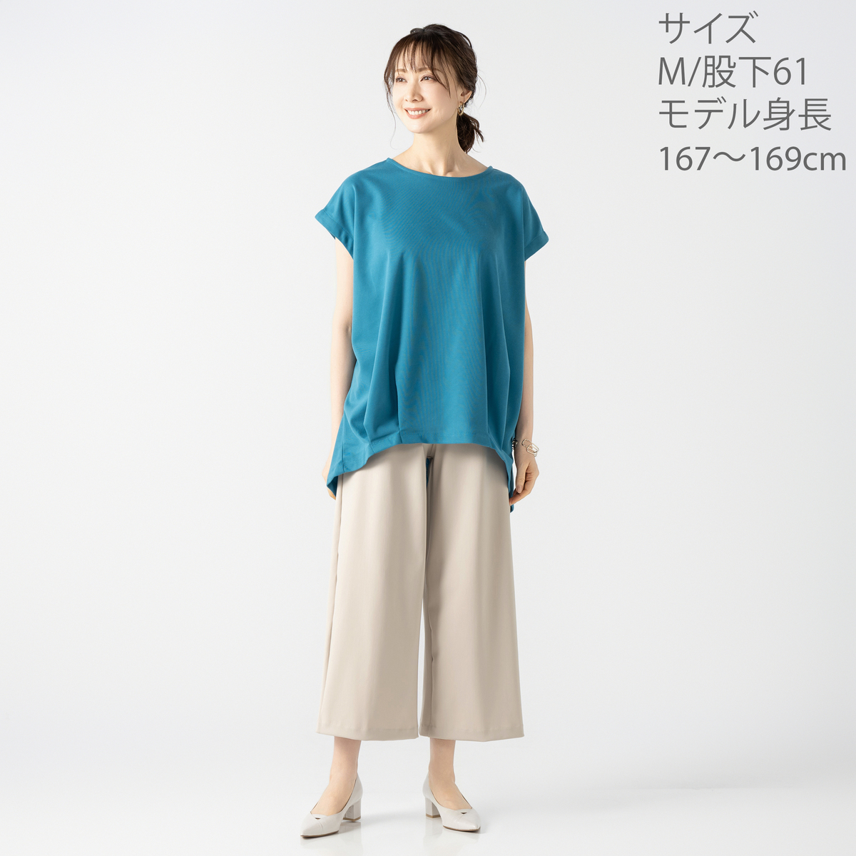 レギンスとステテコを組合せたレギテコパンツ。腰周りにゆとりがあり、脚を長く、きれいに見せてくれるセミワイドシルエットです