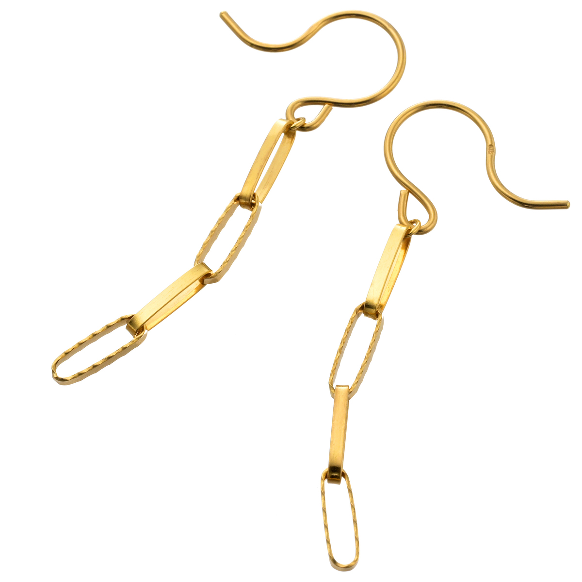 シンプルながらも洗練されたリンクデザインが印象的なロングピアス。動くたびにさりげなく揺れ動き、顔まわりを華やかに演出します