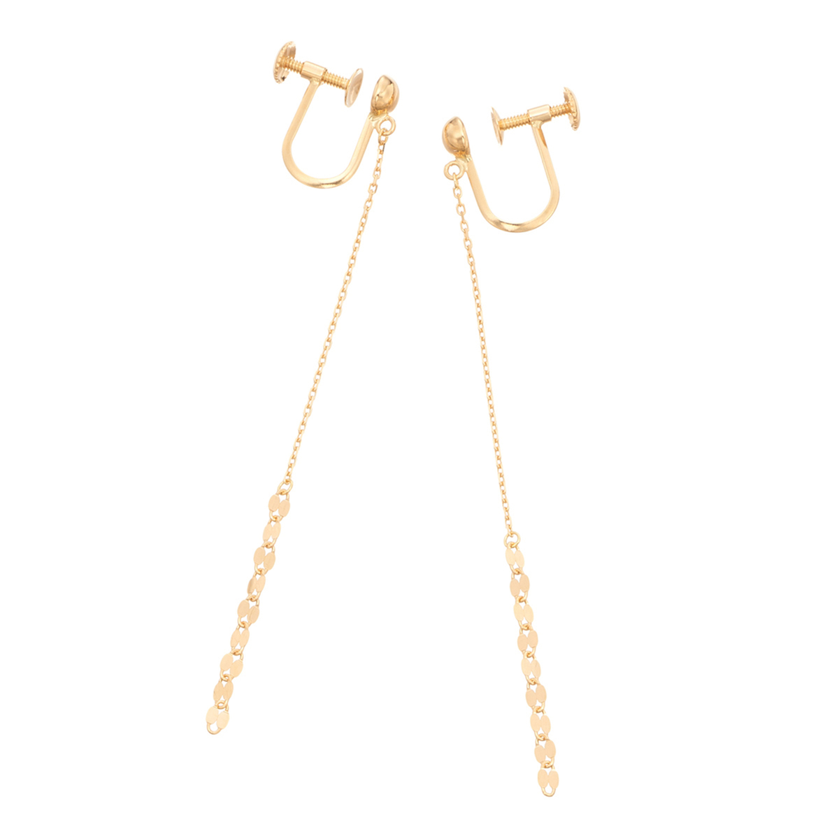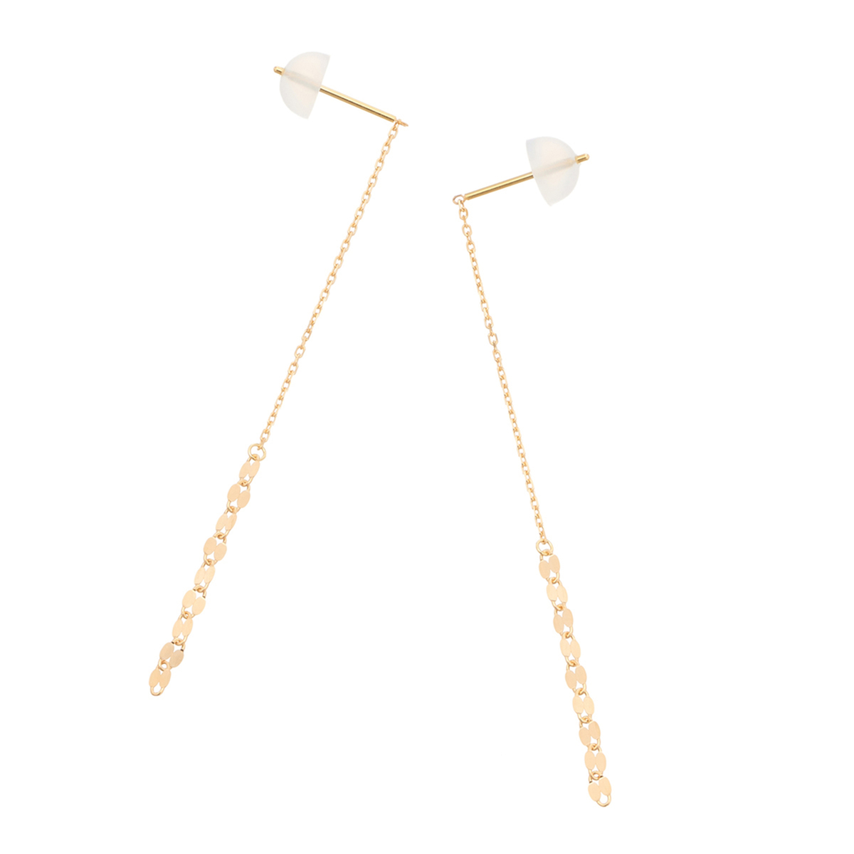 アメリカンタイプのピアスは、チェーンを後ろに垂らしてお好きな長さに調整可能。縦のラインを強調しながら、お顔周りを印象的に飾ります