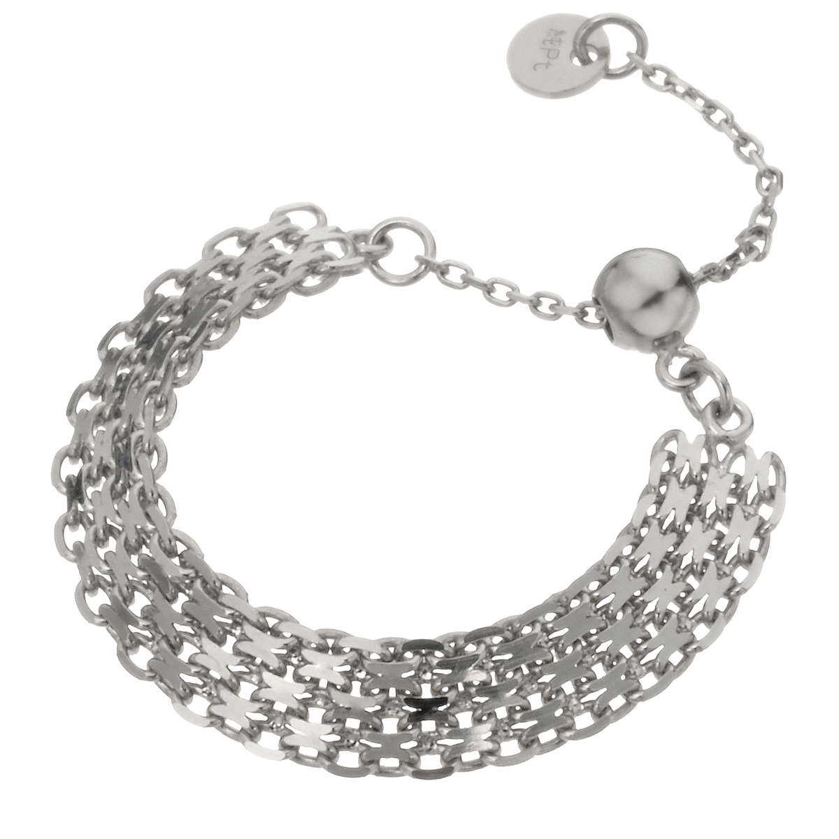 ビスマルクチェーンを使って華やかに仕上げたリング。存在感のあるデザインが個性をプラスし、純プラチナの上品な輝きをお楽しみいただけます