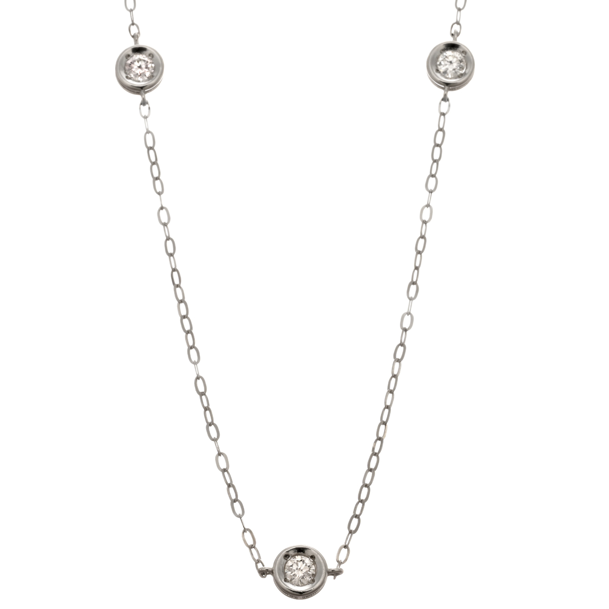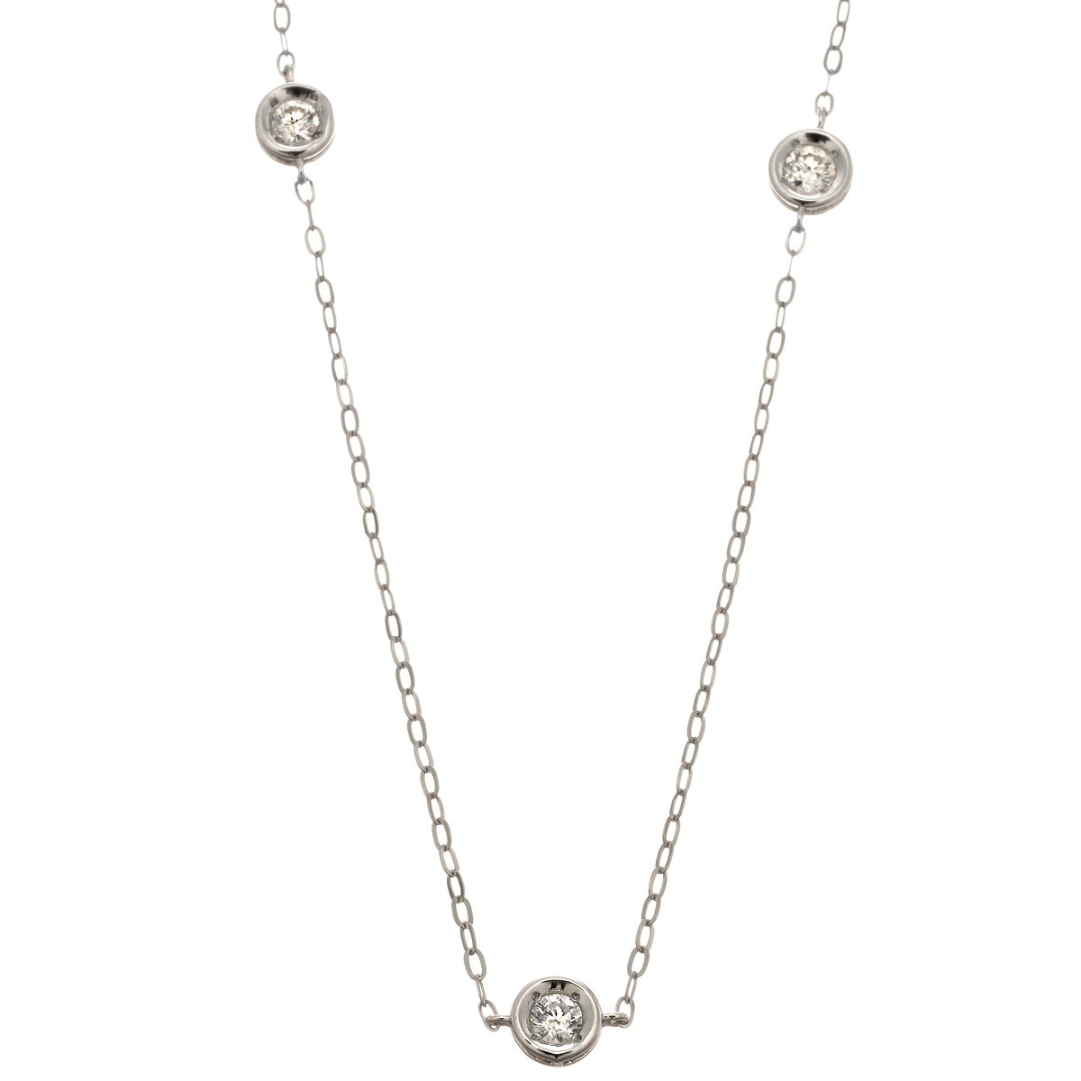 ダイヤモンドをあしらったステーションネックレス。洗練されたデザインと華やかに煌めくダイヤモンドが胸元を上品に彩ります