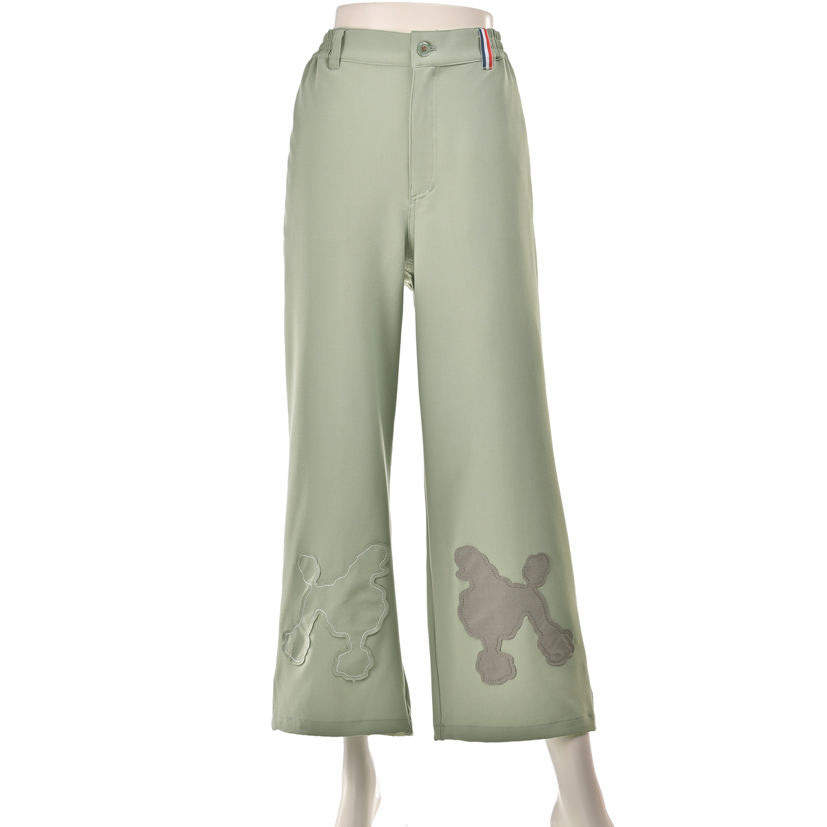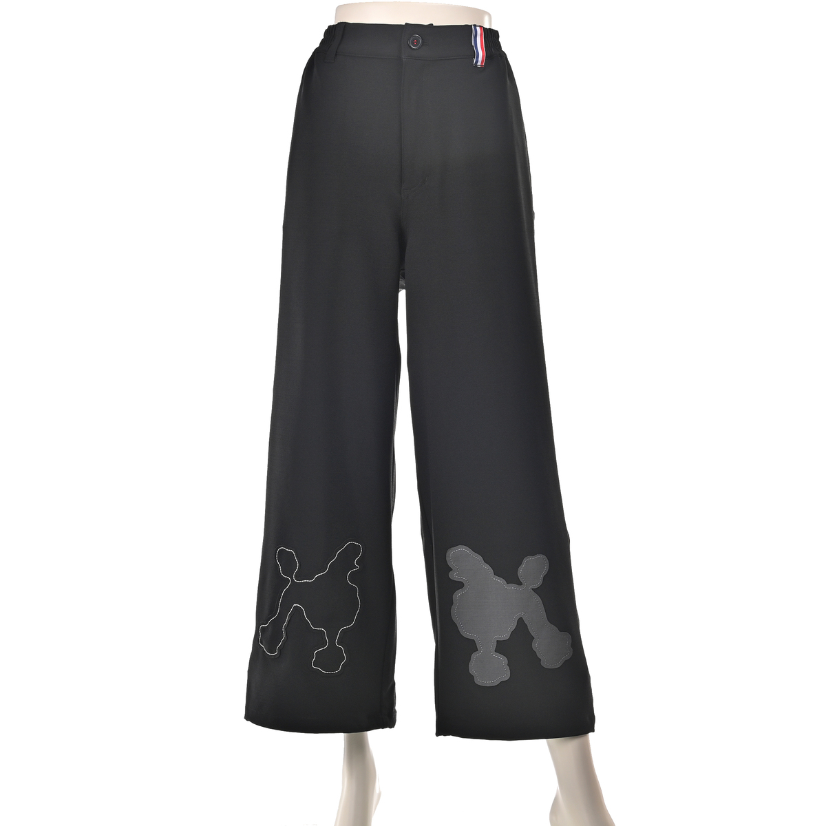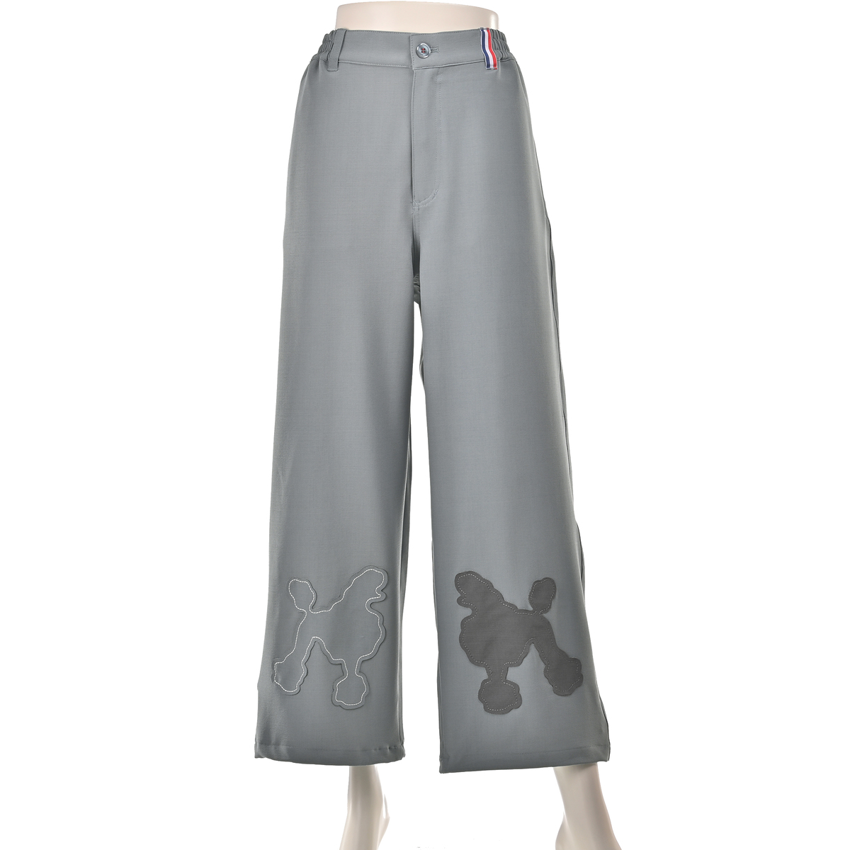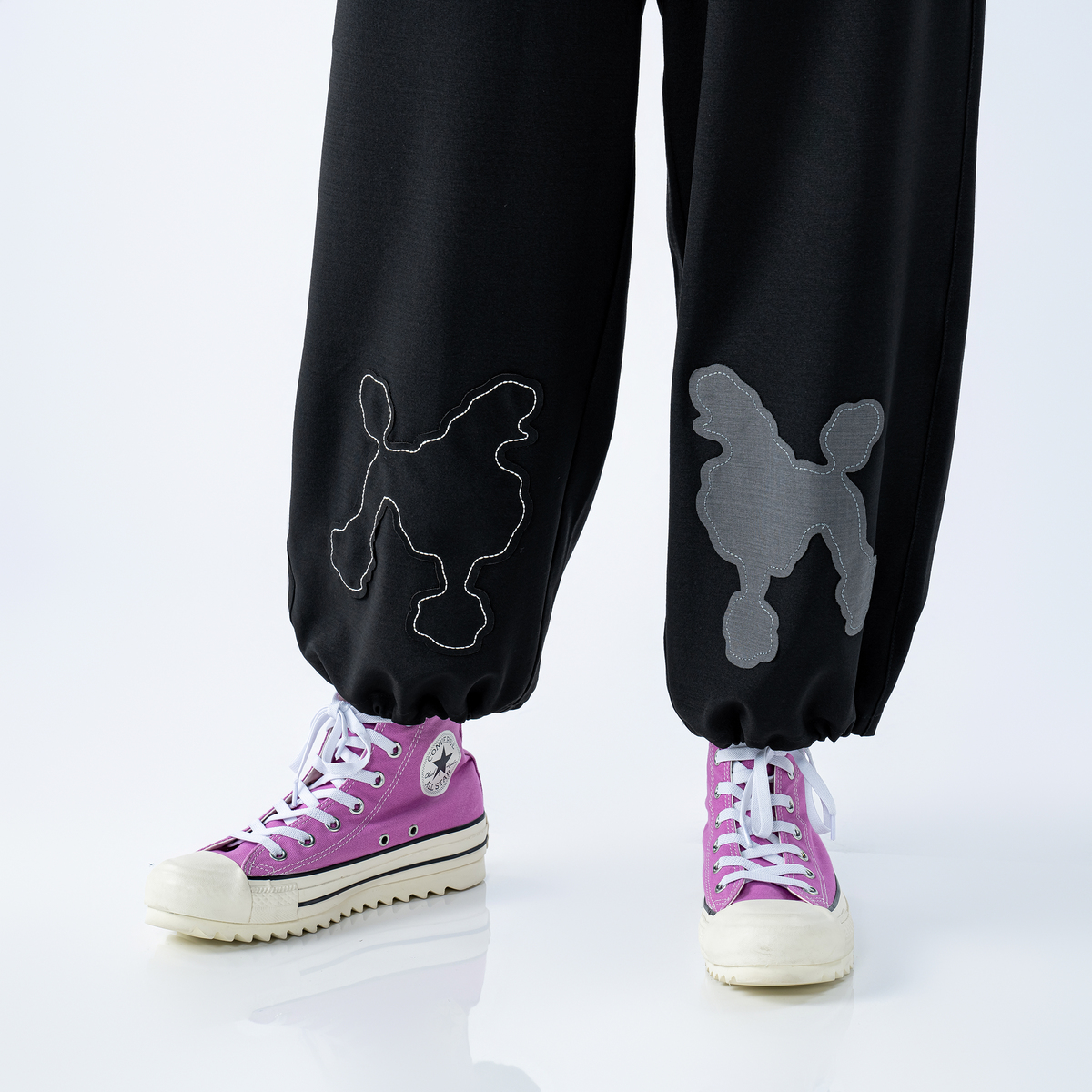 裾のプードルモチーフのアップリケが着こなしに遊び心を添えるデザイン。シンプルなトップスと合わせるだけで、さりげなく個性を演出します