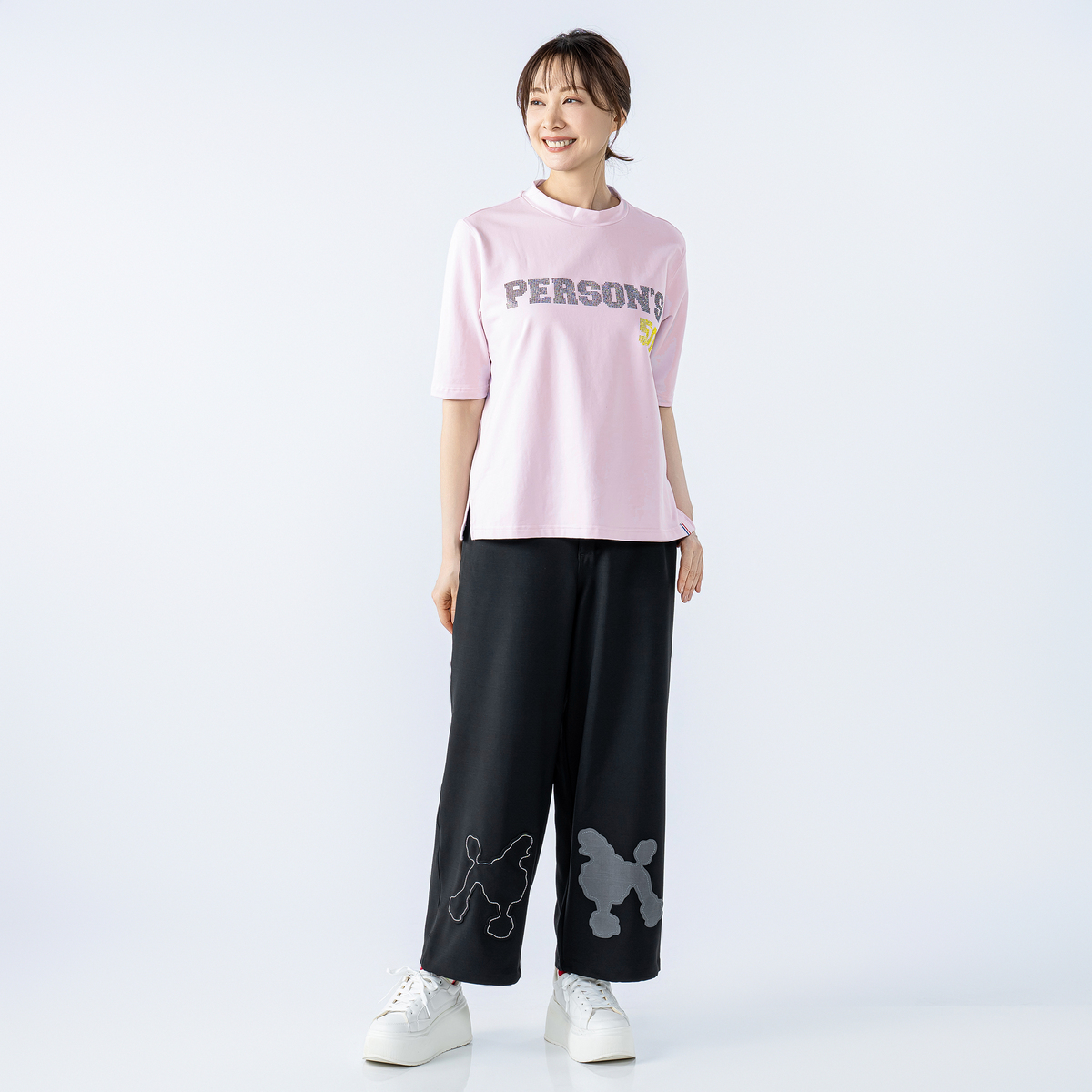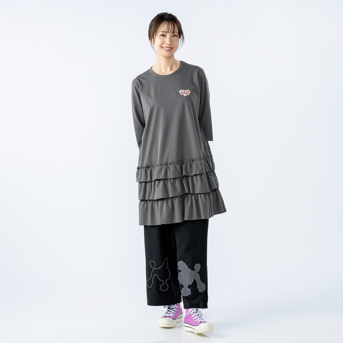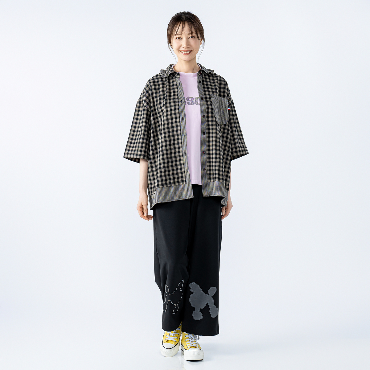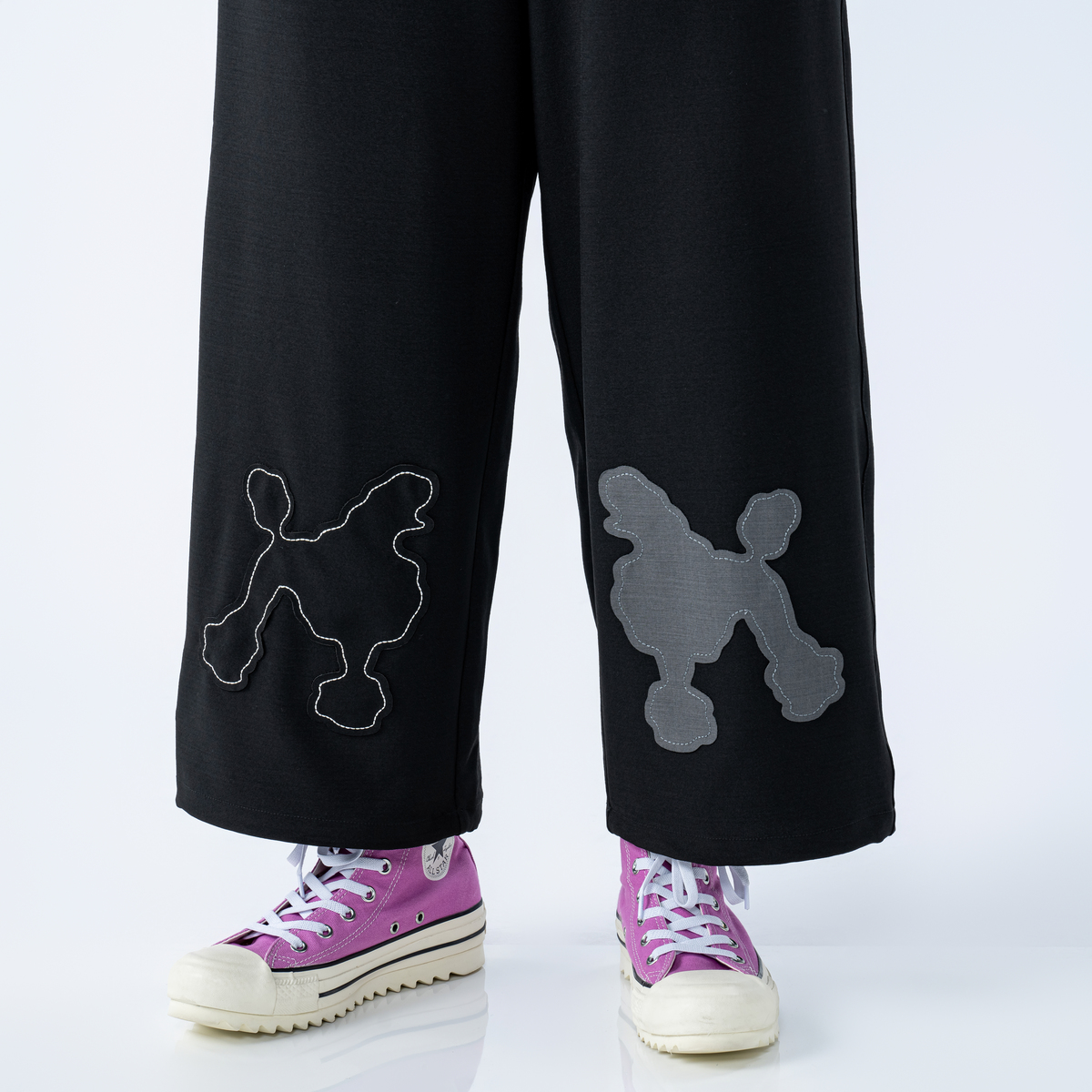 裾のプードルモチーフのアップリケが着こなしに遊び心を添えるデザイン。シンプルなトップスと合わせるだけで、さりげなく個性を演出します
