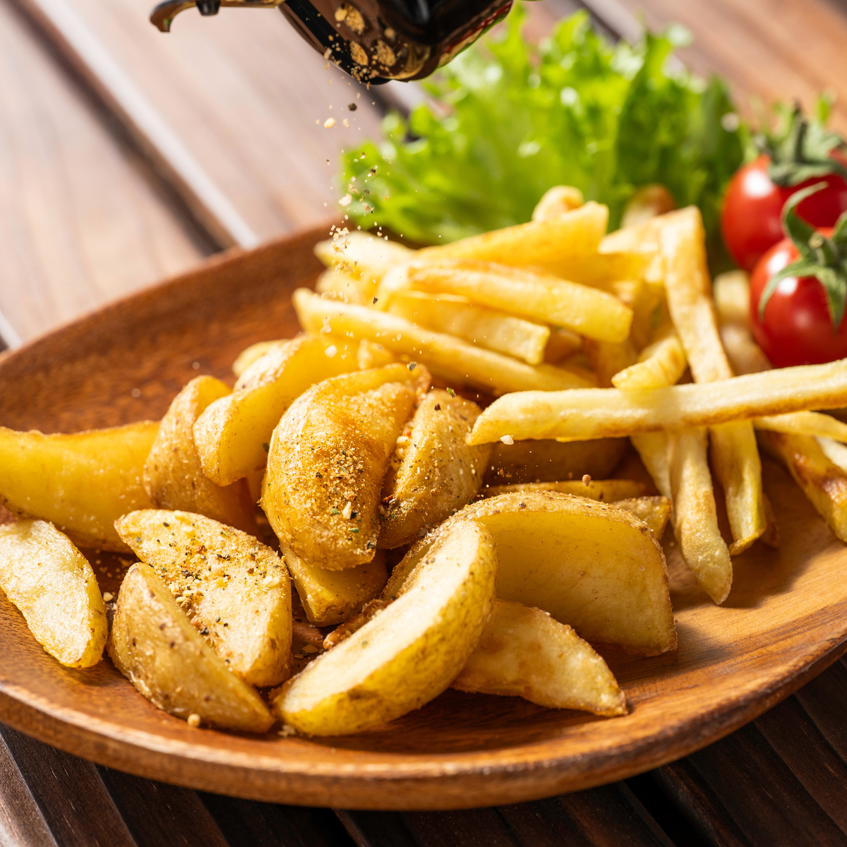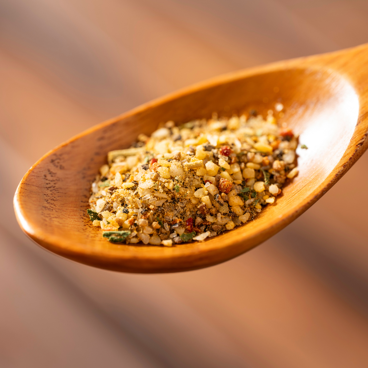 肉、魚、野菜など、どんな食材にもマッチするオールマイティスパイス。塩や醤油など和風テイストで調和のとれたスパイスの中に、風味豊かなガーリックがアクセント。フランス料理などでも使われるミルポアパウダーが、より一層素材の旨味を引き出します