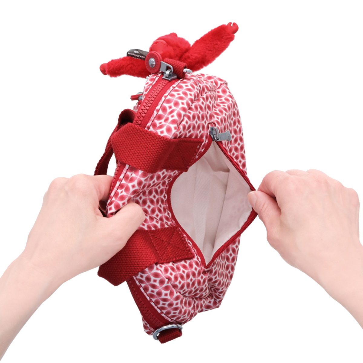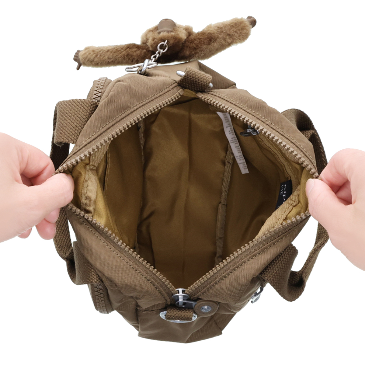 [サイズ(約)] 縦18×横22×マチ8cm ハンドル立ち上がり:7cm ショルダー立ち上がり:33〜65cm [重量(約)]※付属品含む 290g [素材] <表地> ルビータイル以外:ナイロン ルビータイル:ポリエステル ※裏地有 [仕様] 付属(取り外し可):チャーム×1、ショルダーベルト×1 開閉:ファスナー式 底ビョウ:無 [ポケット] <内側> ファスナーポケット×1、オープンポケット×1、ペン挿し×2 <外側> 前面:ファスナーポケット×1 後面:ファスナーポケット×1 [注意事項] ※直射日光や蛍光灯の影響で変色する場合がありますのでご了承ください 【バングラデシュ製】