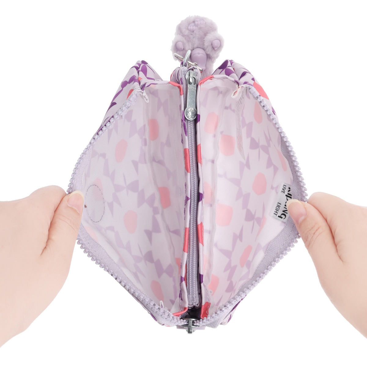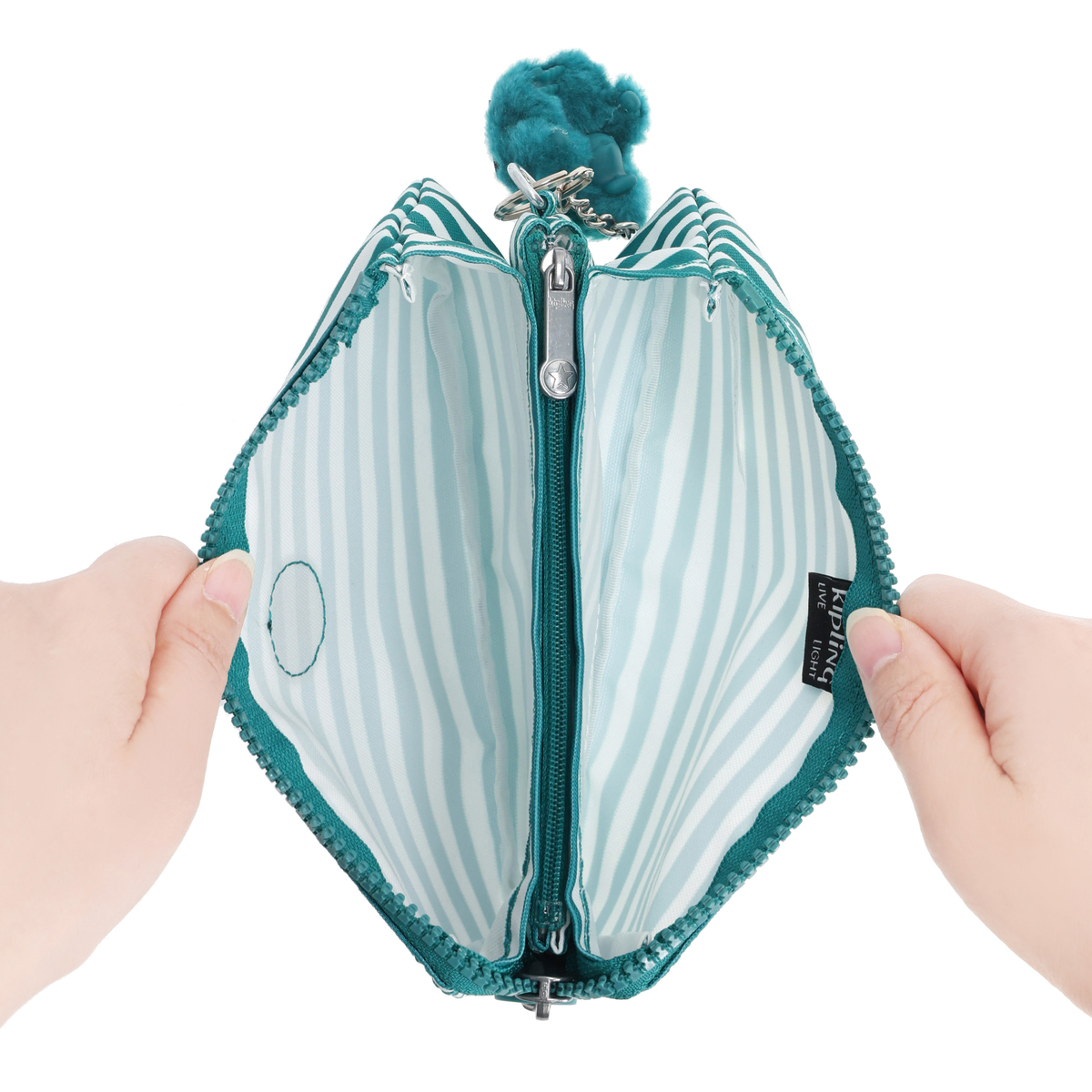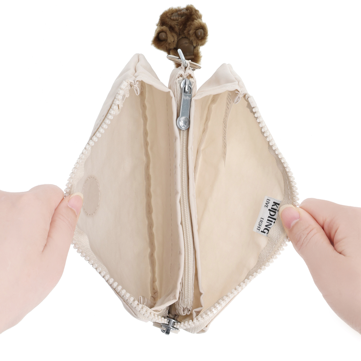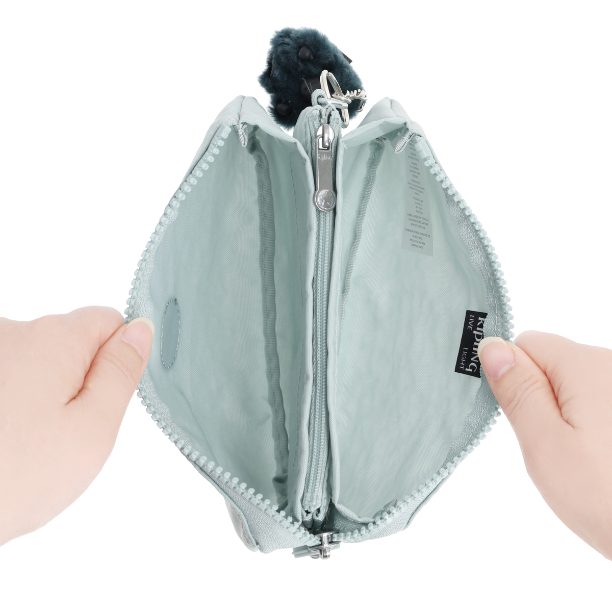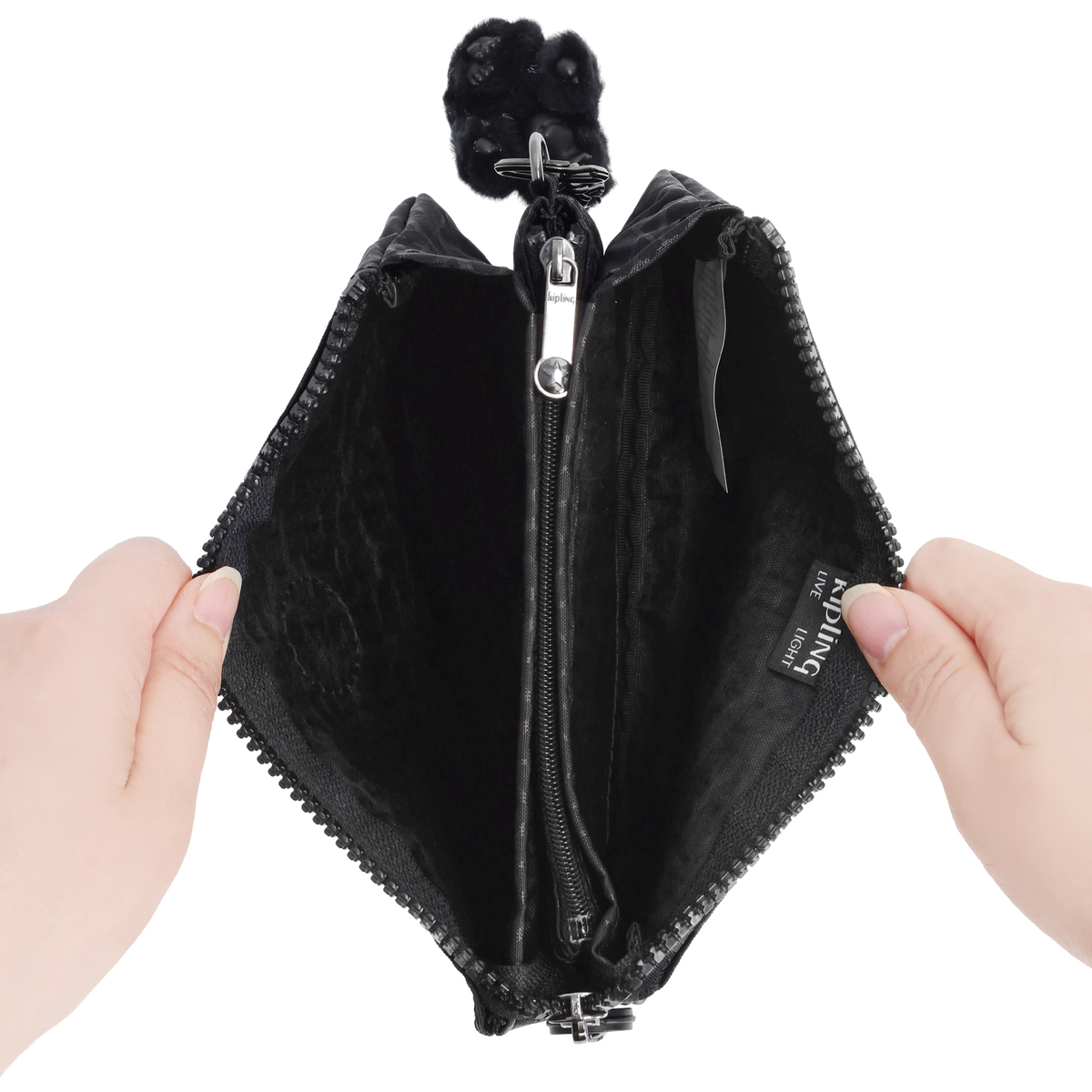 ファスナーの引手部分は、外側と内側どちらもつかみ易い形状に仕上げたオリジナルデザイン。使い勝手のよいつくりにキプリングらしい色柄を添え、デザインに合わせたチャーム付きでキュートに仕上げています