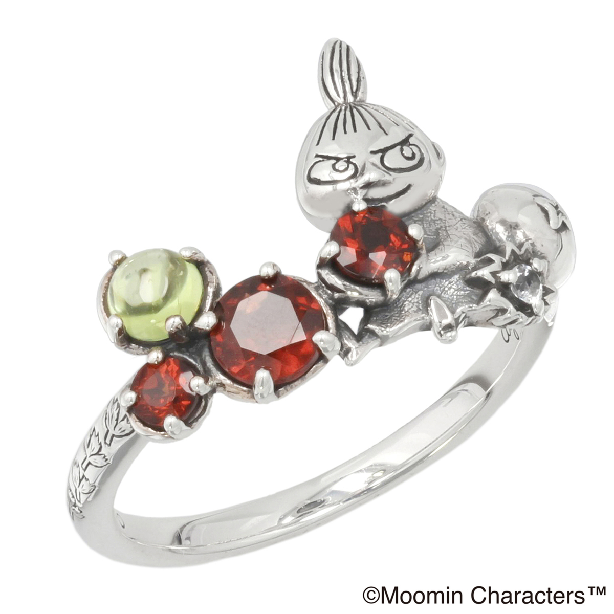 リトルミイをモチーフにしたリング。体はとても小さいけれど勇敢で前向き、スリルが好きで自分のことは自分で決めて突き進んでいくリトルミイ。そんなリトルミイが、コケモモを選んでご機嫌そうな姿をジュエリーで表現しました