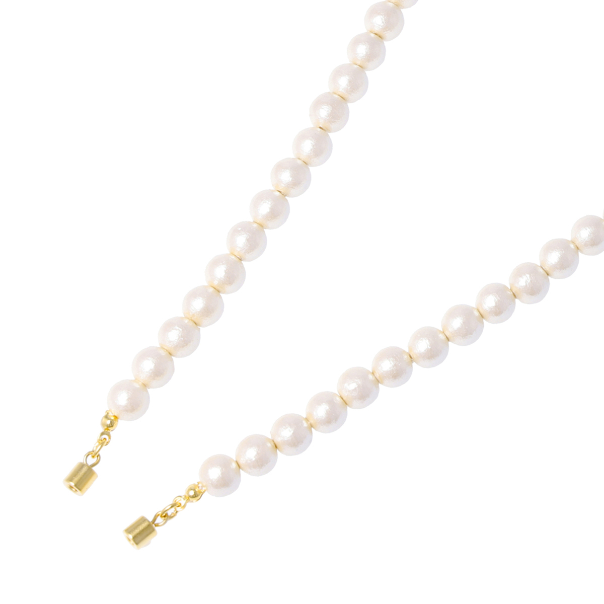 素材:[コットンパール(人工)] 総重量(約) 合計38.7g 長さ(約) 8mm:94.0cm 10mm:96.0cm 幅(約) 大:10.0mm 小:8.0mm 2連 留具の形状 マグネット アジャスターの有無 無 [地金] 真鍮 [メッキ] ホワイト:金色メッキ グレー:シルバーカラーメッキ ■留め具にはマグネットを使用しています ■素材の大きさ・形・色合い、製品のサイズは1点1点多少異なります 【日本製】 ※コットンパールは人造真珠のため、加工の際に塗料を使用しております ※塗料の独特の匂いが気になる場合がございます。匂いが気になる場合は袋から出してしばらく保管してください。匂いは時間が経過すれば徐々に抜けていきます。コットンパールは1 粒1 粒、手作業で作られているため、同じサイズでも色や形・サイズに多少の差があります。綿でできているという性質上、表面に凹凸 やざらつき・シワ等がある場合があります。またコットンパールは水に大変弱いので、汗や水分がついた場合は柔らかい布等で、すぐにお拭き取りください ※濡れたまま放置すると色が落ちることがありますのでご注意ください。変形や変質の恐れがありますので、火気に近づけないでください。保管の際は高温多湿の場所や直射日光はお避けください ※製品のデザイン上、強い衝撃を与えると変形や破損の原因となります ※ご使用後は、柔らかい布でのお手入れをお勧め致します ※雨・汗等などの水気によりメッキ部分が変色したり、剥がれたりする場合がございますので、十分に水気を拭き取り乾かして保管してください ※研磨剤を含んだ布、シルバー洗浄液でのお手入れ、加熱やその他洗浄溶剤の使用はおやめください。剥がれ・変色・割れの原因となりますのでご注意ください。メッキ仕上げの性質上、永久的な品質を保証するものではありません。衣類・皮膚・他のアクセサリー等との擦れ合いにより、摩耗・傷・変色・メッキ剥がれ が起こる場合がございます。ご注意の上、ご使用ください