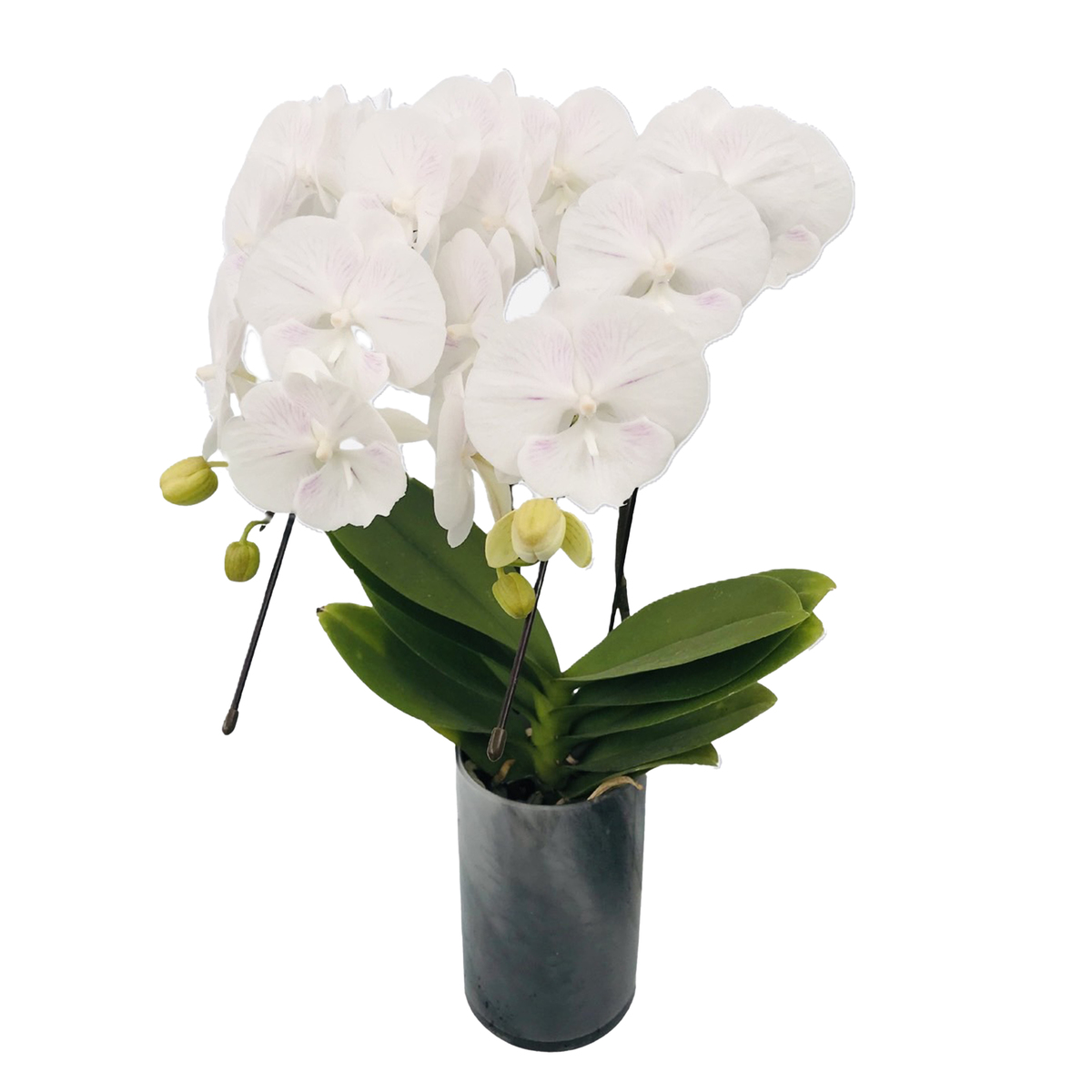 天使のはごろもは、白いベースに淡いピンクのストライプが入った優しい印象の胡蝶蘭。リビングに飾るのに丁度よいサイズ感のミディ胡蝶蘭で、贈り物にもおすすめ。ギフトにも適したドレスBOXに入れてお届けします