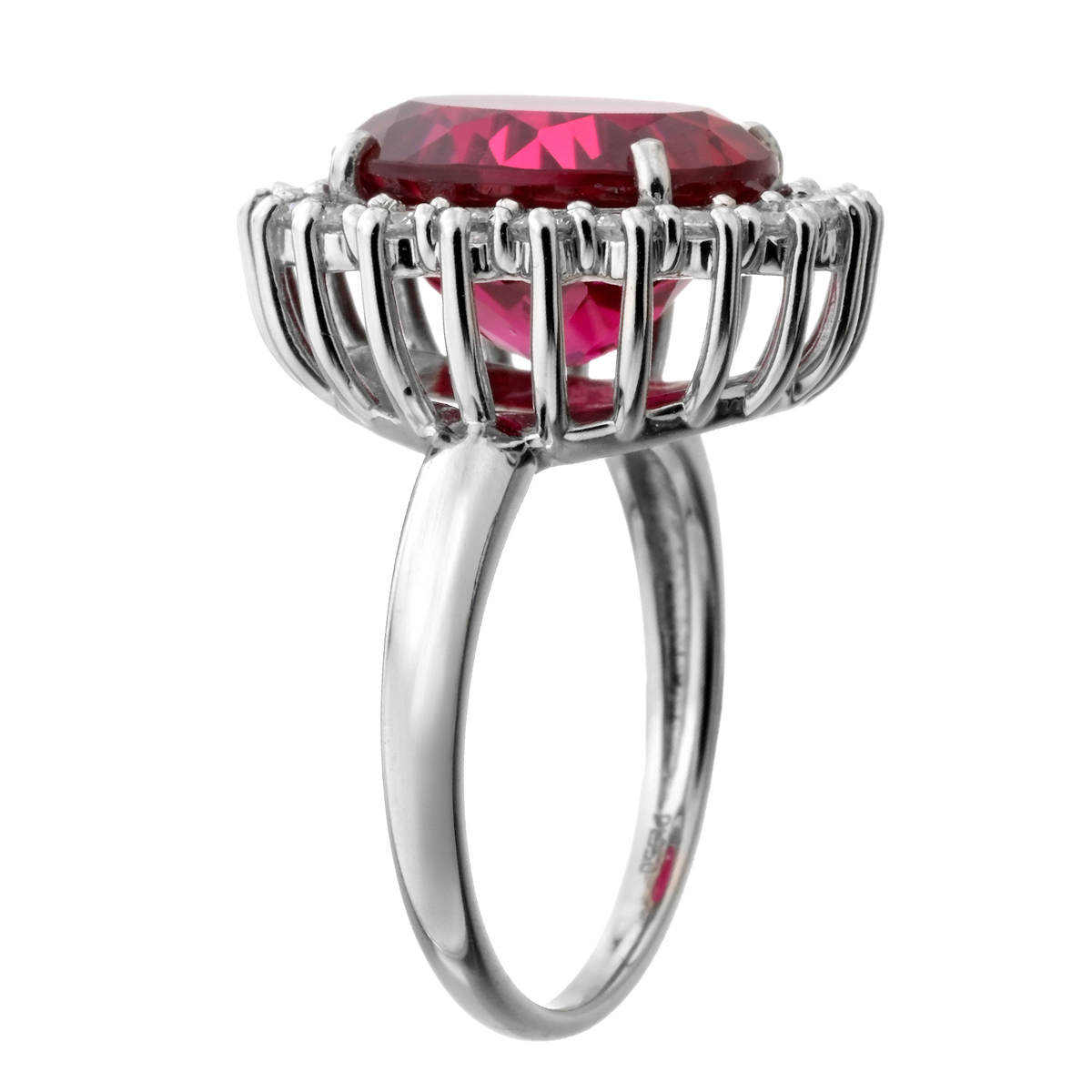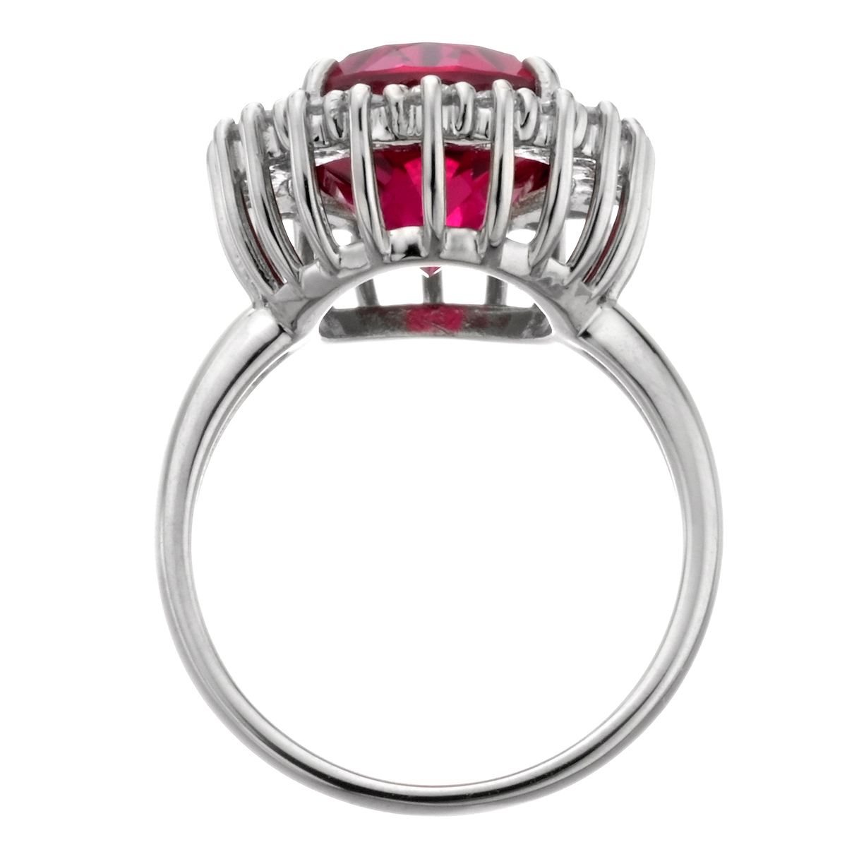 素材: [合成ルビー] オーバルシェイプ 爪留め 1石 6.00ctUP [合成ダイヤモンド] ラウンドシェイプ 爪留め 20石 合計0.60ctUP 最大幅(約) 17.5mm 最小幅(約) 1.5mm 総重量(約) 6.5g [地金] プラチナ950 ■サイズ直し対象外 ■受注発注商品のためデザイン・価値に影響のない範囲で仕様が変わる場合がございます ■素材の大きさ・形・色合い、製品のサイズは1点1点多少異なります 【日本製】