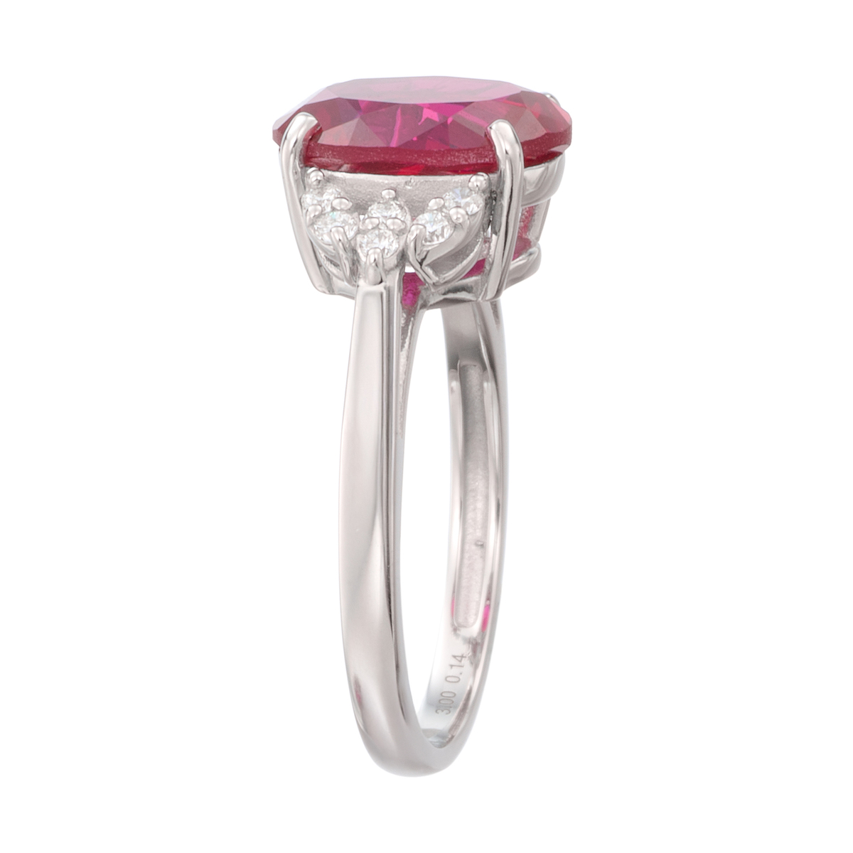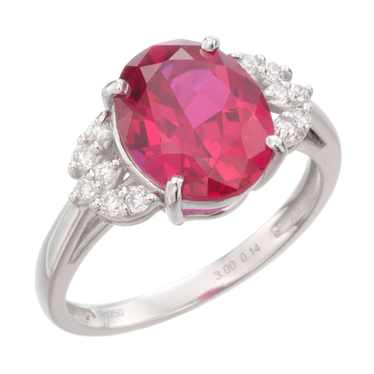 素材:[合成ルビー] オーバルシェイプ 爪留め 1石 3.00ctUP [合成ダイヤモンド] ラウンドシェイプ 爪留め 12石 合計0.14ctUP 最大幅(約) 9.5mm 最小幅(約) 1.5mm 総重量(約) 3.6g [地金] プラチナ950 ■サイズ直し対象外 ■受注発注商品のためデザイン・価値に影響のない範囲で仕様が変わる場合がございます ■素材の大きさ・形・色合い、製品のサイズは1点1点多少異なります 【日本製】