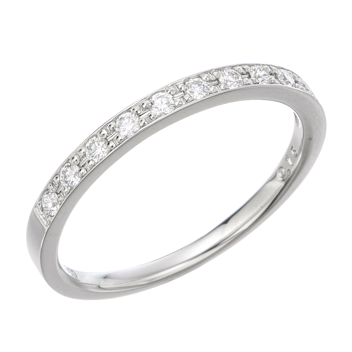 10石のダイヤモンドが輝くハーフエタニティリング。単品はもちろん、重ね着けしてもお楽しみいただけます。ロゴマークを入れた専用ケース、ショッパーバッグ付きで、プレゼントにもおすすめです