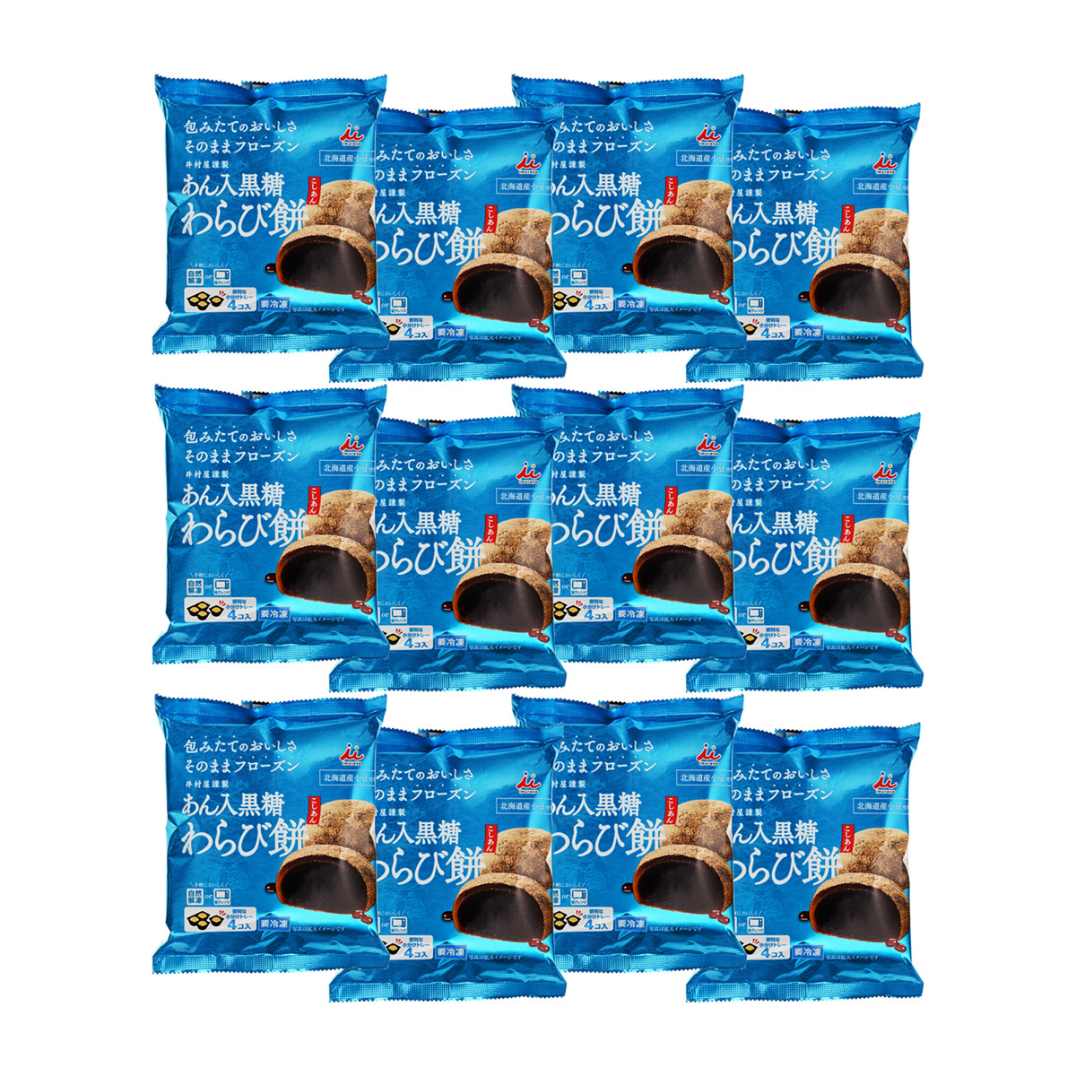 [アレルギー物質特定原材料8品目] なし [内容量] 184g(4コ入)×12袋 [賞味期限] 出荷時点で賞味期限まで120日以上ある商品をお届けします [保存方法] 開封前:冷凍(ー18℃以下)で保管してください 開封後:解凍後は早めにお召しあがりください [お召し上がり方] 解凍してそのままお召し上がりください <自然解凍の場合> ・商品表面に霜がついている場合は霜を落としてから解凍してください ・ラップをかけて、下記の時間を目安に解凍してください 室温(約20℃):約1時間30分 冷蔵庫:約3時間 <時短解凍の場合(電子レンジ+室温放置)> 1、凍ったままトレーごと切り離す 2、電子レンジで加熱 ・ラップをかけずに、トレーのまま下の時間を目安に加熱してください ・中央には置かないでください ※ターンテーブルがない場合は中央に置いてください ・調理時間の目安 500W・600W:1コ20秒、2コ30秒 ※加熱直後は半解凍の冷たい状態です。このまま食べてもひんやりと美味しく頂けます ※レンジ出力は500W・600Wを推奨しています ※調理時間の目安は機種によって異なります ※あたため(自動)不可 ※外袋ごと電子レンジ不可。この外袋はアルミ使用のため、外袋ごとレンジで加熱すると発火する恐れがあります 3、ほどよいやわらかさになるまで待つ ・5〜10分室温で放置すると温度ムラがなくなり、おいしくお召しあがりいただけます [注意事項] ※この外装はアルミ使用のため、外装ごとレンジで加熱すると発火につながる恐れがあります ※ご家庭の冷凍庫は温度変動が大きいので、購入後は賞味期限内であっても早めにお召しあがりください ※一度解凍した商品を再び凍らせると品質が変わることがありますので、避けてください [原料原産地] こしあん(生あん(小豆)、グラニュー糖、水あめ、寒天)(国内製造) [原産国] 日本 [原材料] こしあん(生あん(小豆)、グラニュー糖、水あめ、寒天)(国内製造)、水あめ、グラニュー糖、黒糖、麦芽糖、きな粉、わらび粉/加工でん粉、(一部に大豆を含む)