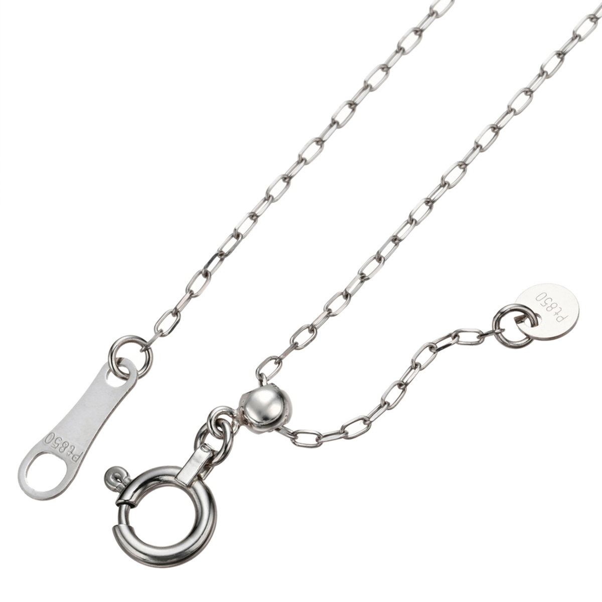 [地金] プラチナ850 総重量(約) 0.9g 長さ(約) 45.0cm 幅(約) 0.8mm チェーンの形状 カットアズキ 留具の形状 引き輪 アジャスターの有無 有(スライド式) 留め具の受け側 最大幅×高さ 2.7×2.2mm ■受注発注商品のためデザイン・価値に影響のない範囲で仕様が変わる場合がございます ■素材の大きさ・形・色合い、製品のサイズは1点1点多少異なります 【日本製】