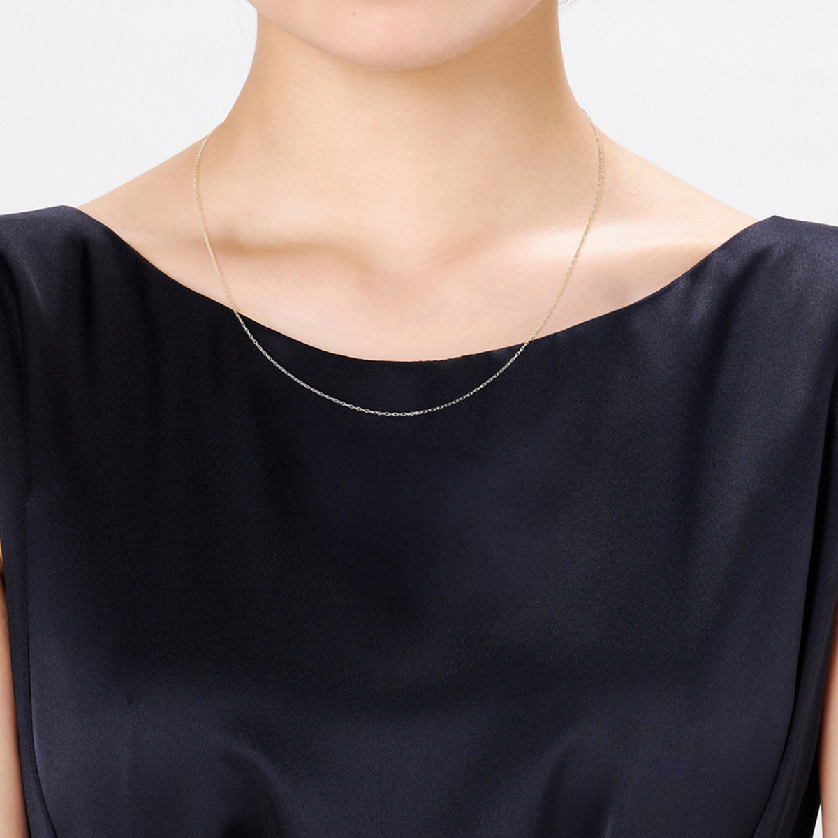 プラチナのチェーンネックレス。程良い太さで、そのまま着けたり、お手持ちのペンダントヘッドと合わせて、便利にお使いいただけます