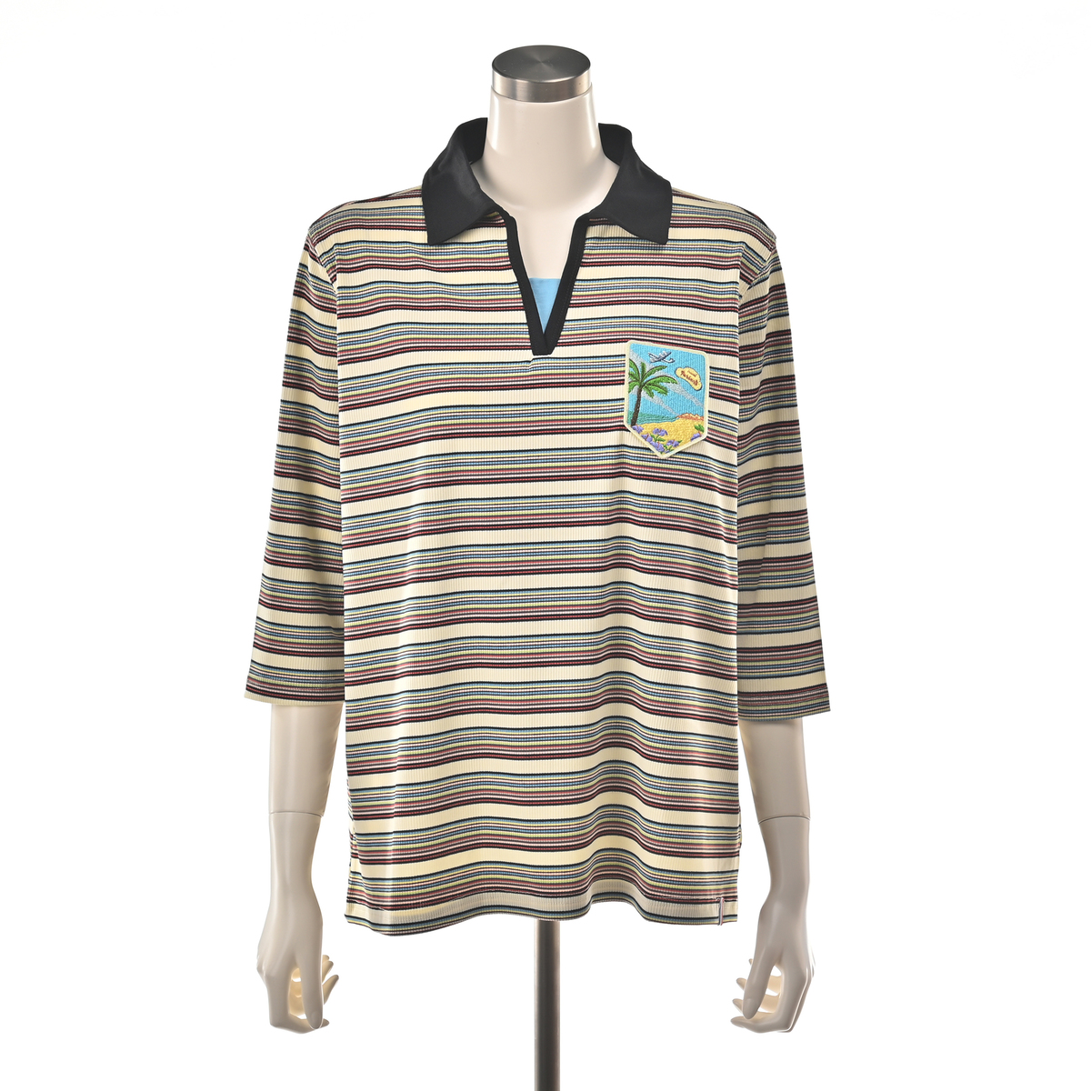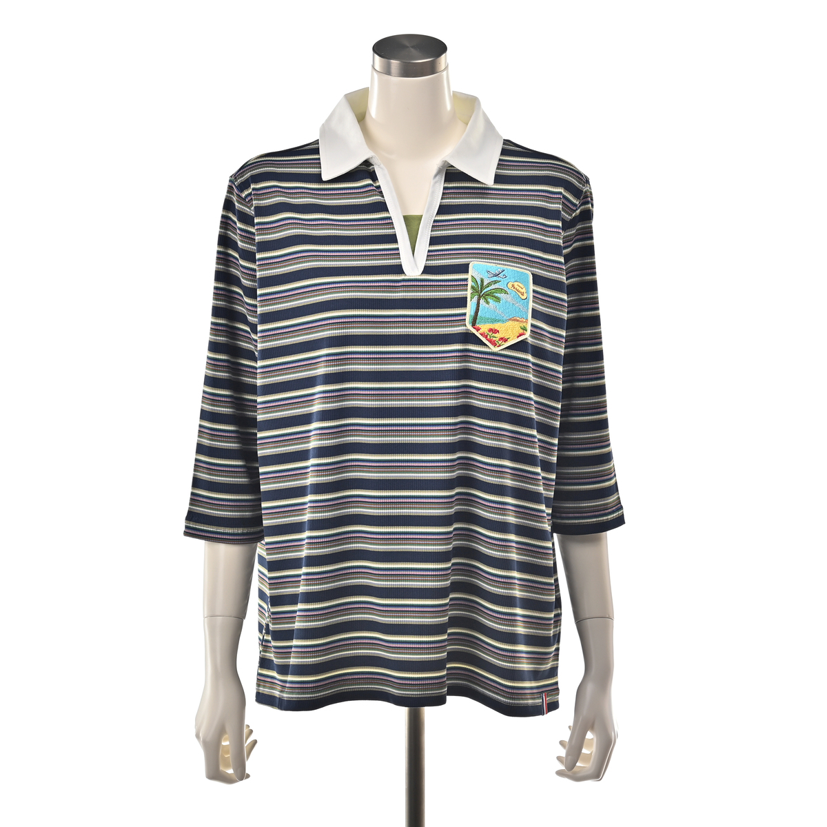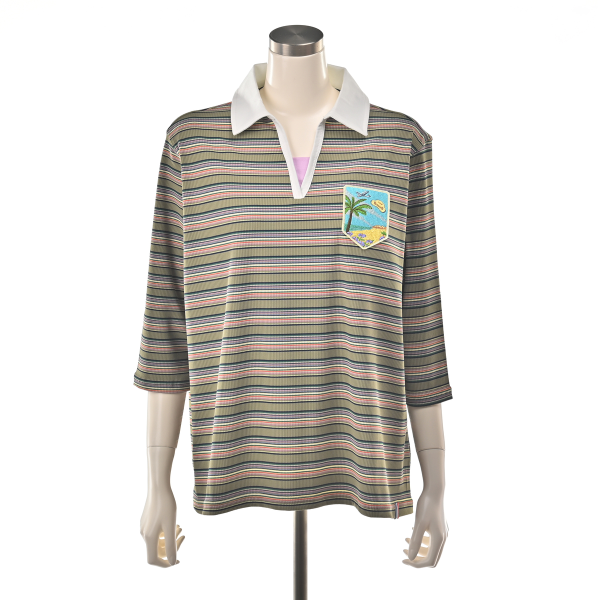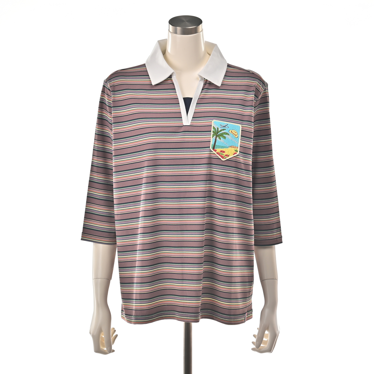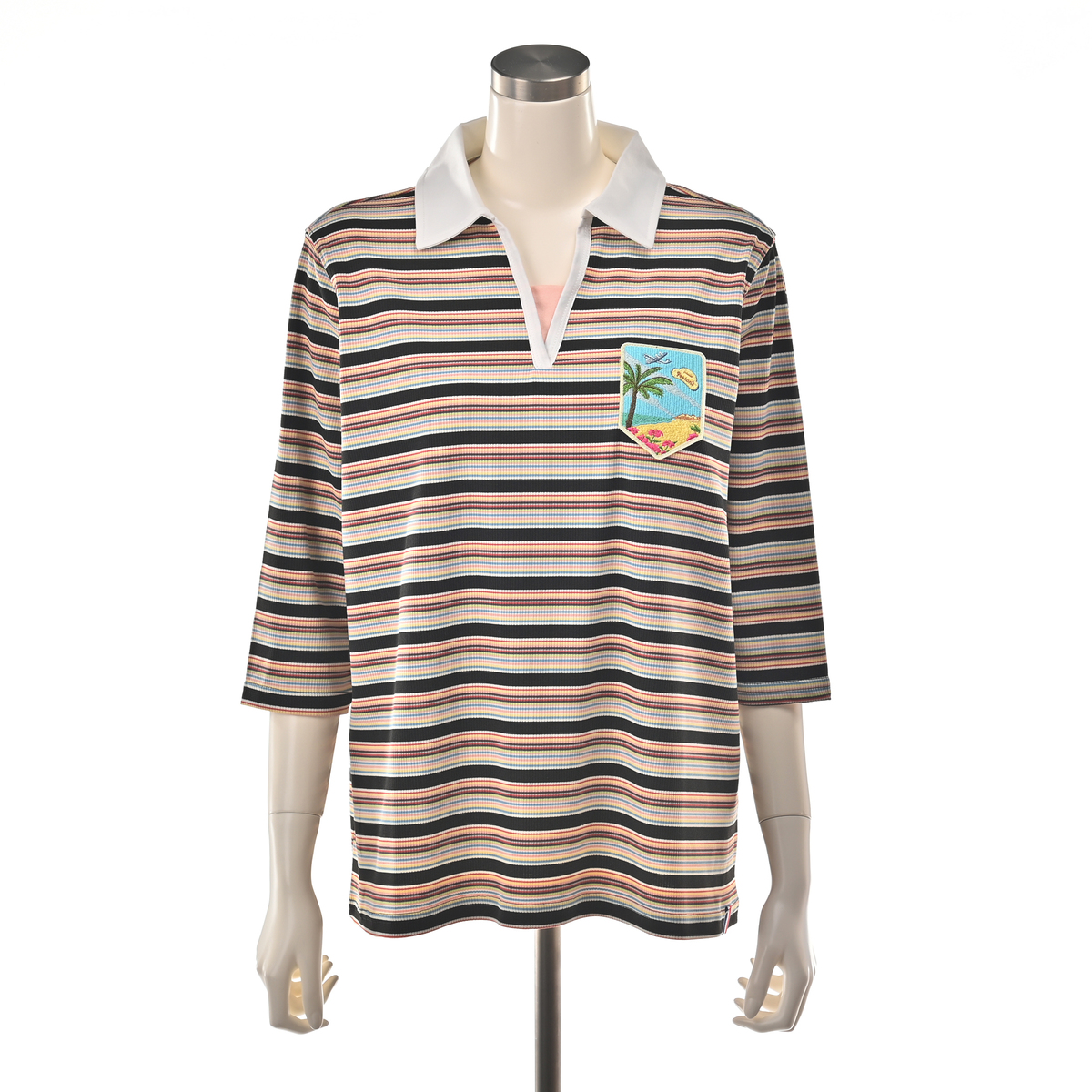 No. 755109 PERSONS マルチカラーテレコスキッパー衿トップス