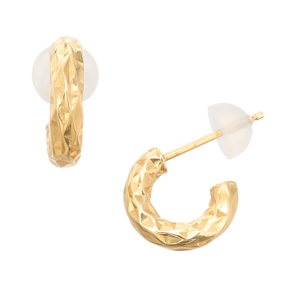 シンプルで軽やかなイタリア製のピアスです。美しく磨かれたイエローゴールドの輝きと、菱形に施したカットが星のようなきらめきを放ちます