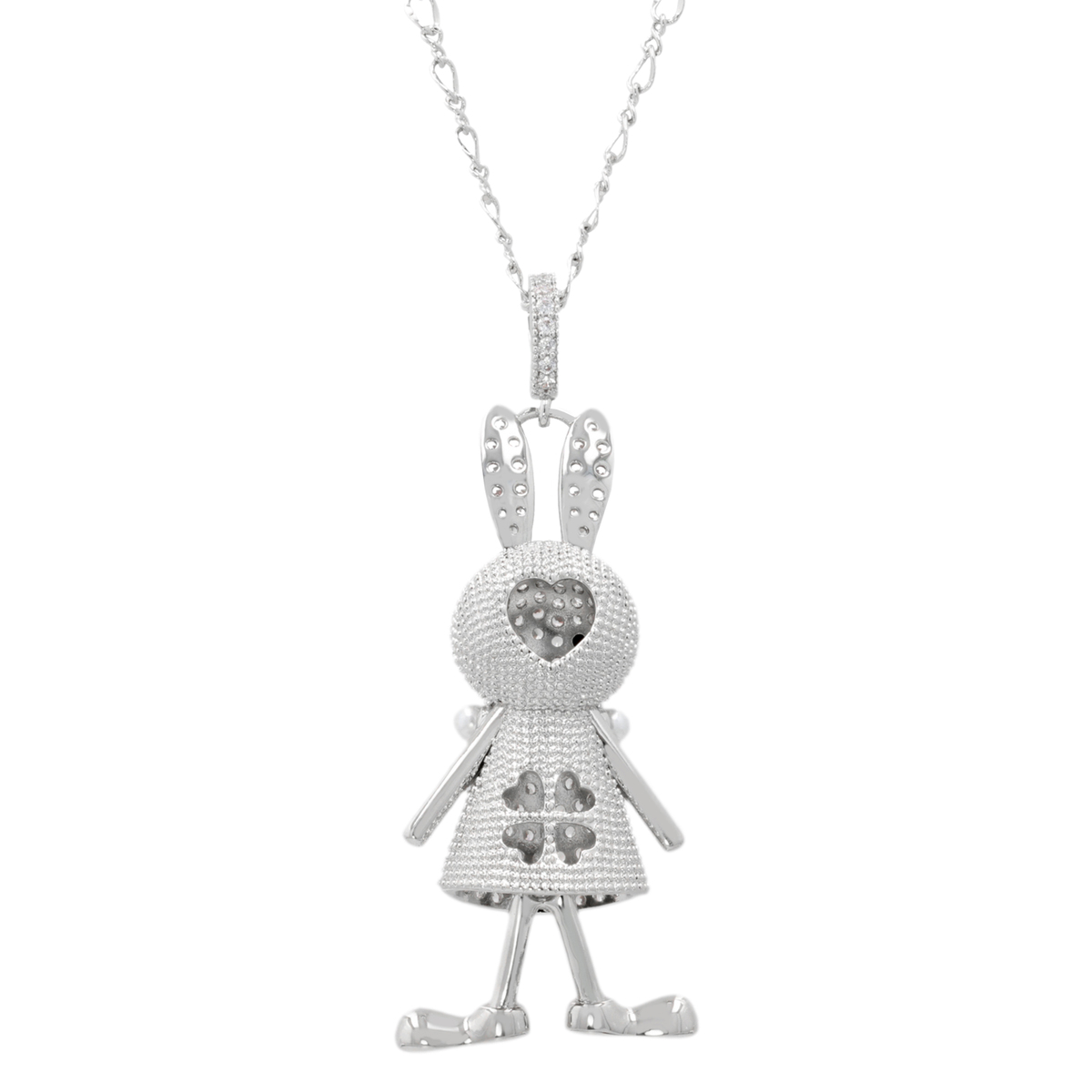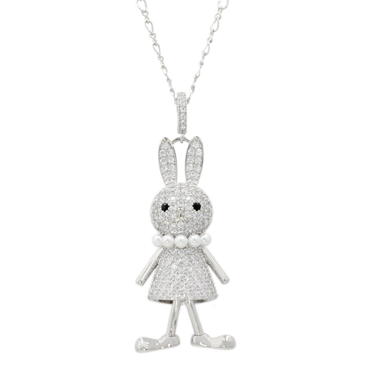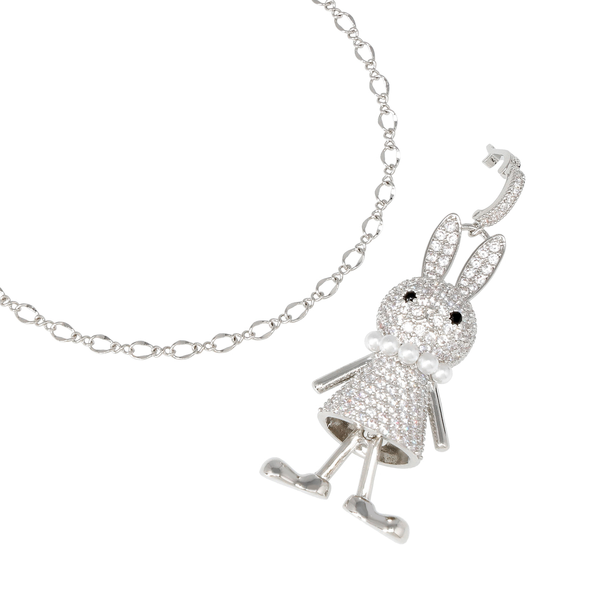 きらめくキュービックジルコニアを纏った小さなラビットが可愛らしいペンダントです。ふんわり揺れるようなスカートとパールビジューのネックレスのアクセントで、可愛らしさと上品さを両立。毎日の装いにさりげないときめきを添えます