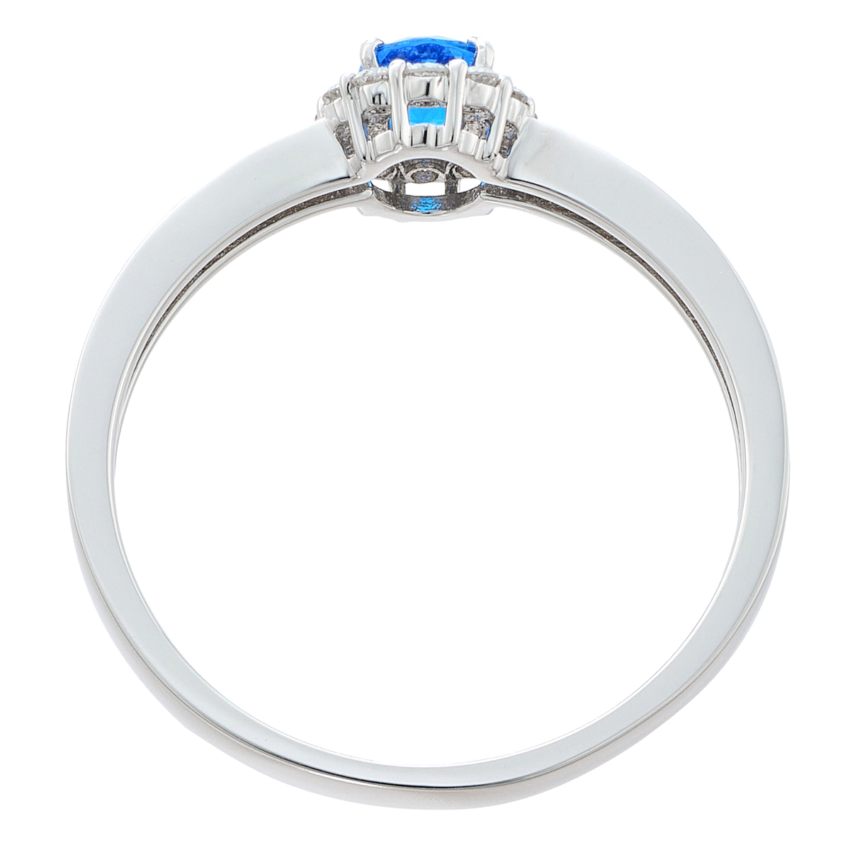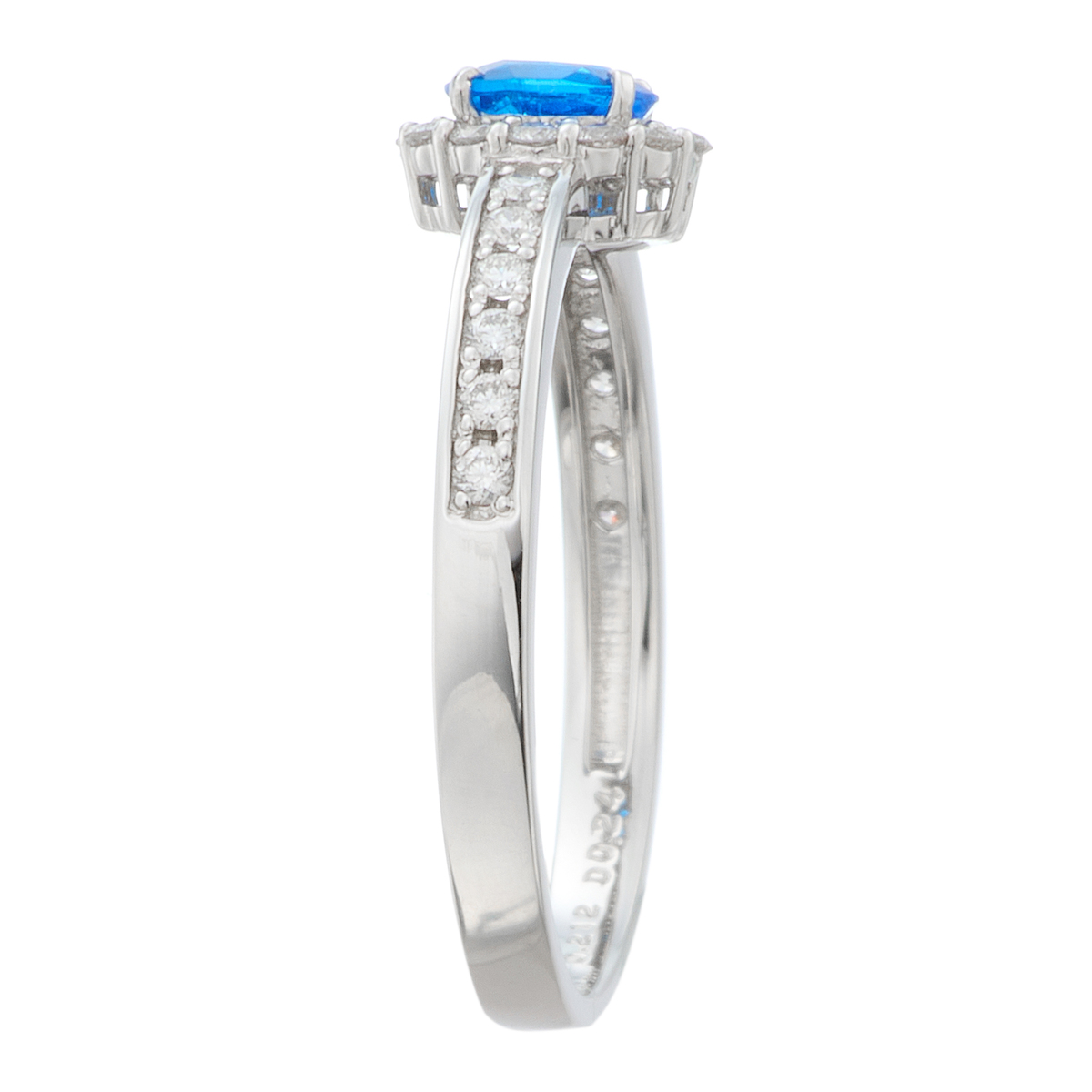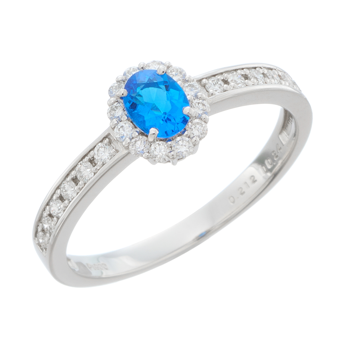 オーバルシェイプのアウィナイトをあしらったリング。ダイヤモンドで取り巻き、鮮やかなコバルトブルーのアウィナイトを引き立てています
