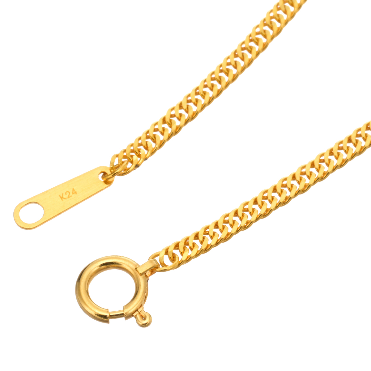 [地金]24Kゴールド 総重量(約) 2.5g 長さ(約) 18.0cm 幅(約) 2.0mm チェーンの形状 キヘイ 留具の形状 引き輪 アジャスターの有無 無 チャームの有無 無 ■受注発注商品のためデザイン・価値に影響のない範囲で仕様が変わる場合がございます ■素材の大きさ・形・色合い、製品のサイズは1点1点多少異なります 【日本製】