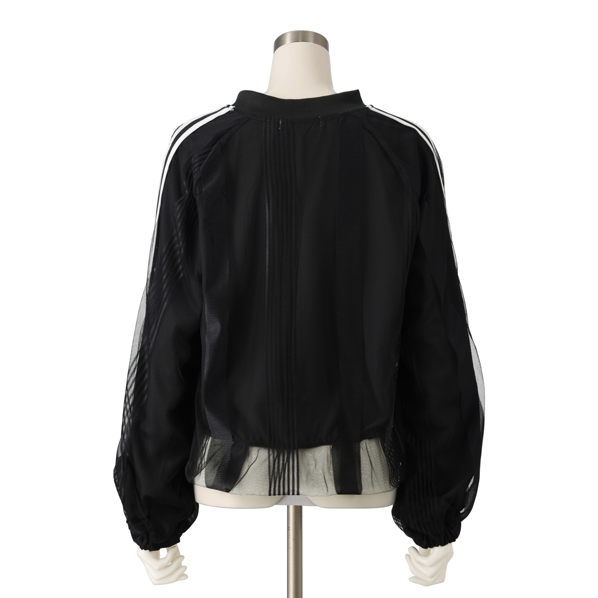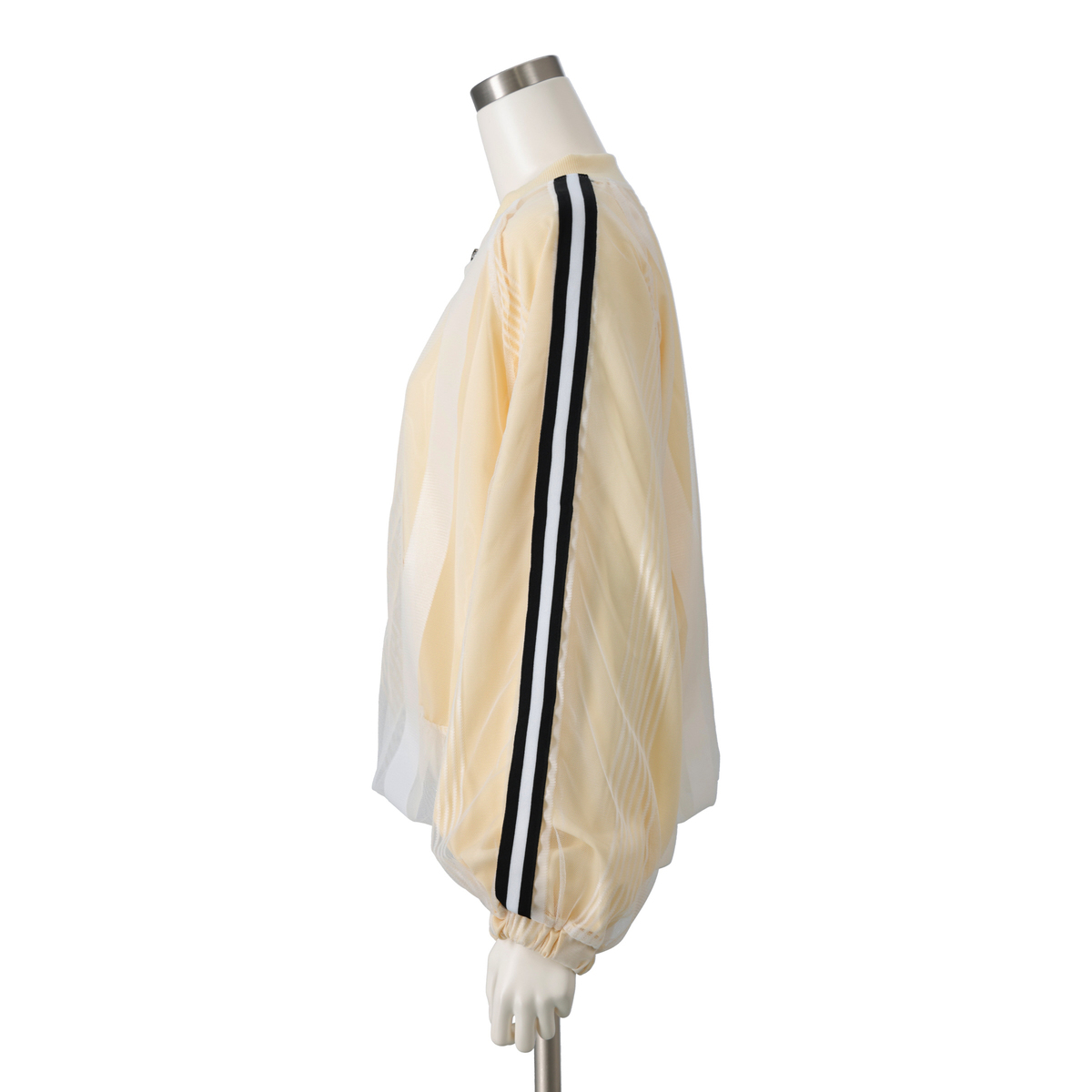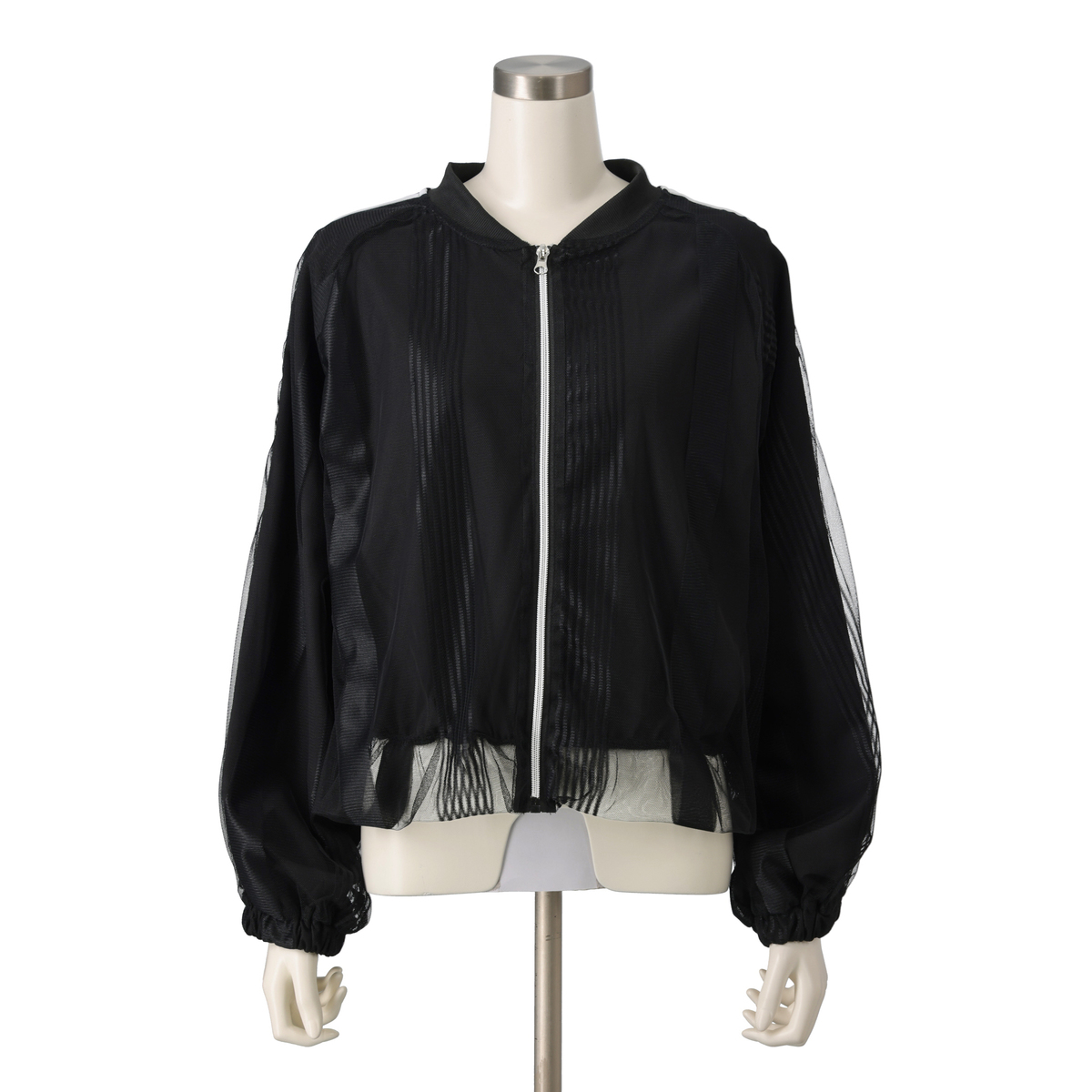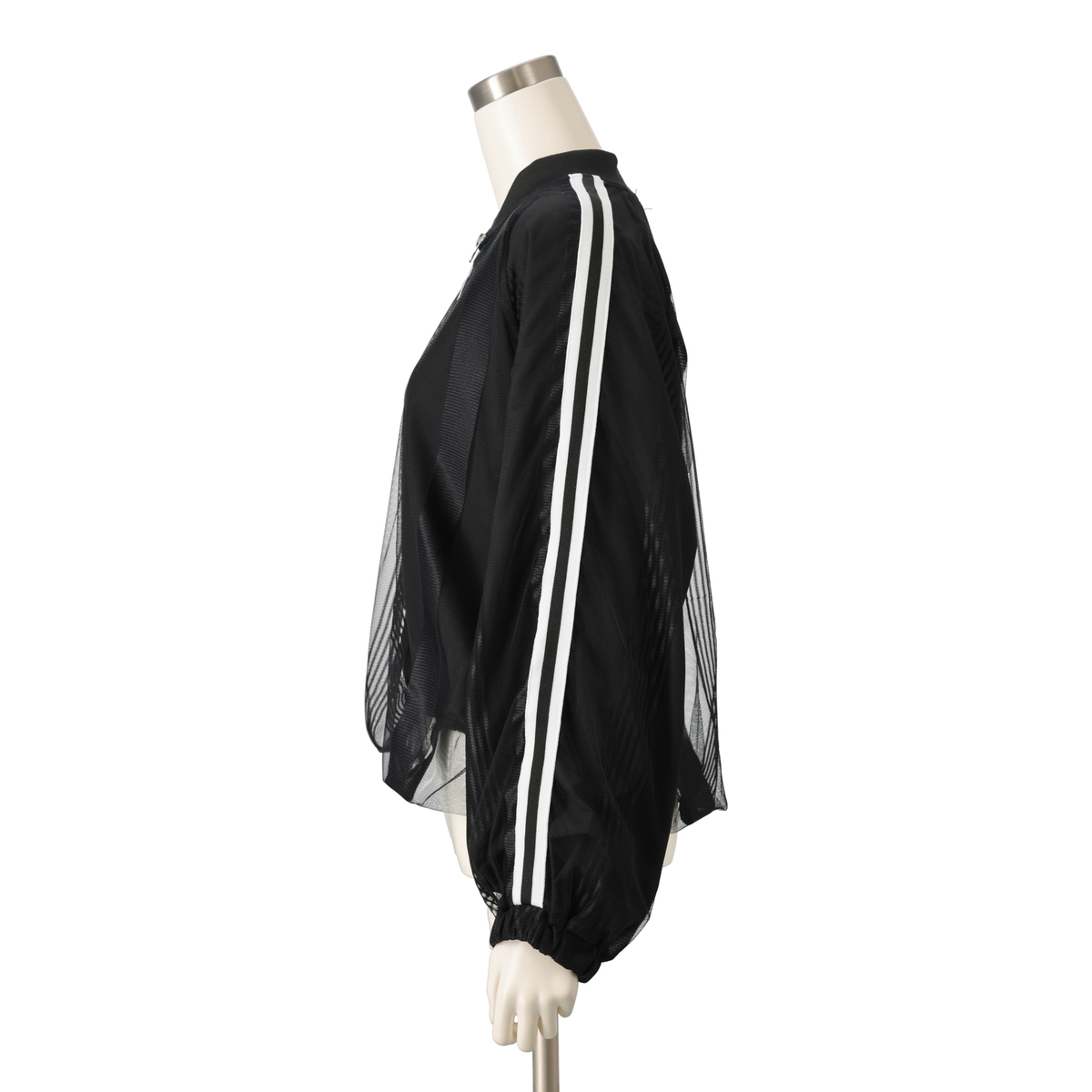 透け感のあるストライプが印象的な、エアリーな着心地のジップアップブルゾンです。光をやわらかく通すことで、フェミニンな雰囲気と抜け感を演出。縦ラインがすっきりとした印象を与え、羽織るだけでスタイリングに季節感と奥行きをもたらします